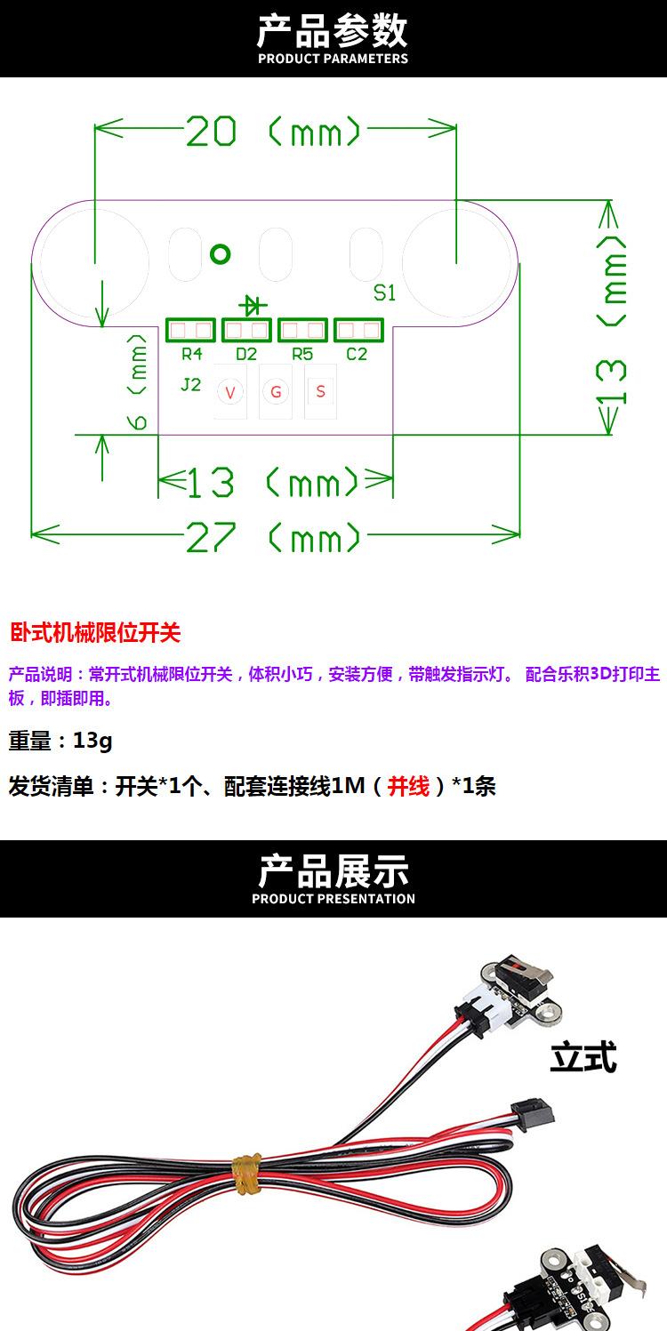 Interruptor de límite de impresora 3D, accesorios de placa base, reinicio mecánico, toque, tope final, toque ligero horizontal, carrera, correa, línea