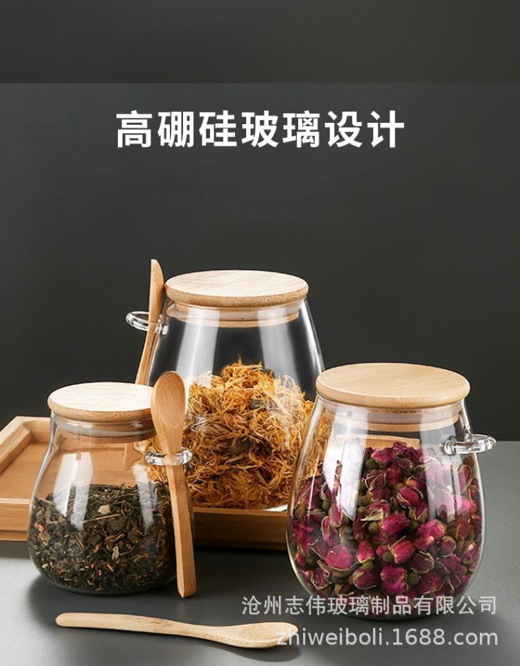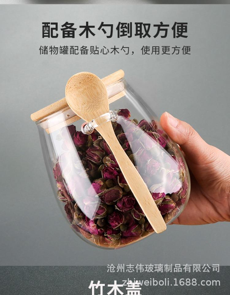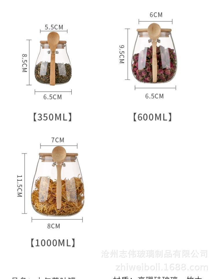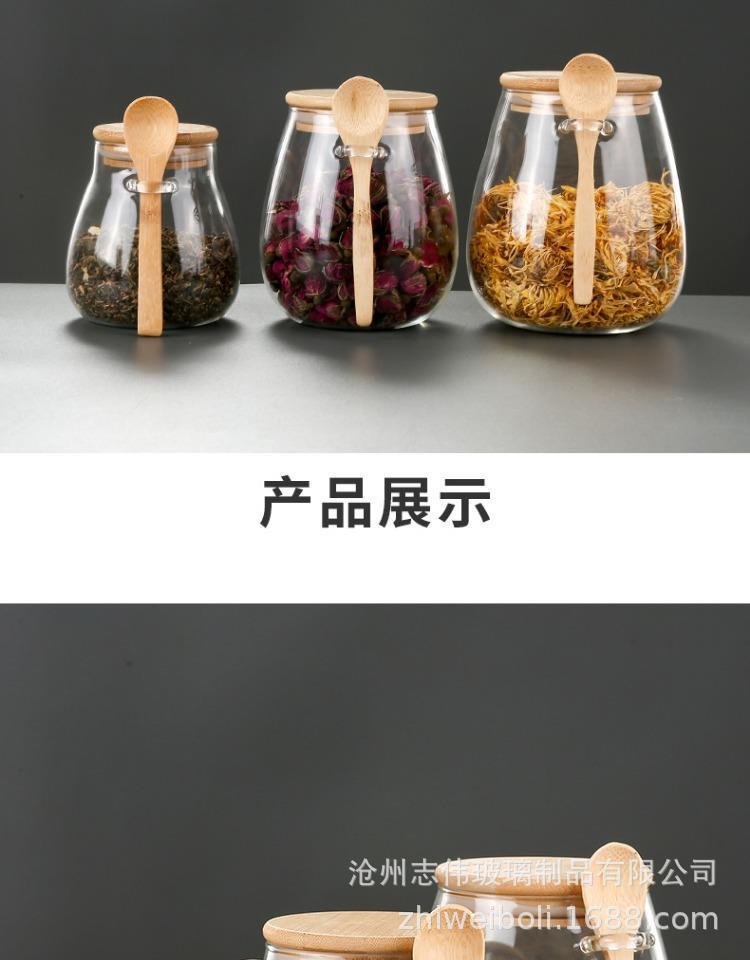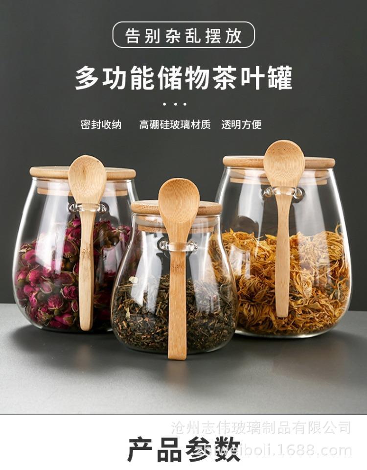 Compra Frasco de Almacenamiento de Vidrio Transparente de Alto Valor de Color con Cuchara de Madera con Tapa Frasco Sellado de Vidrio Multi-Tamaño para Té Tatu Frasco de Almacenamiento al por mayor en Joom.pro