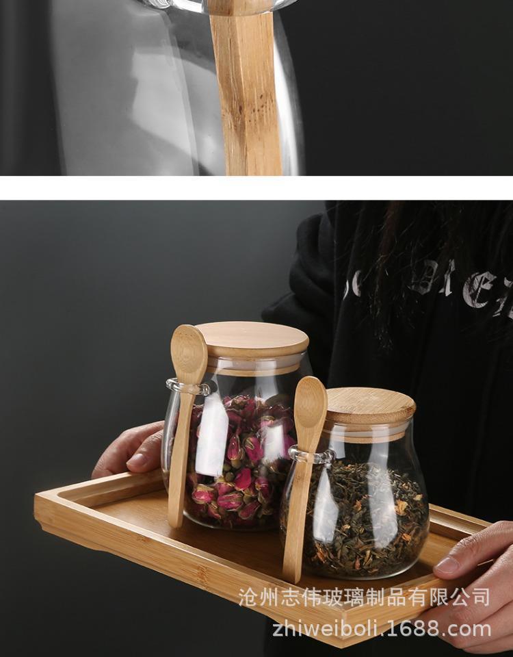 Frasco de Almacenamiento de Vidrio Transparente de Alto Valor de Color con Cuchara de Madera con Tapa Frasco Sellado de Vidrio Multi-Tamaño para Té Tatu Frasco de Almacenamiento