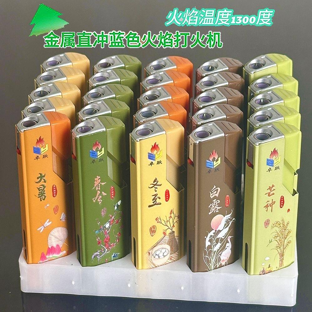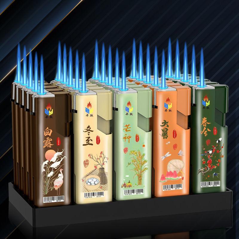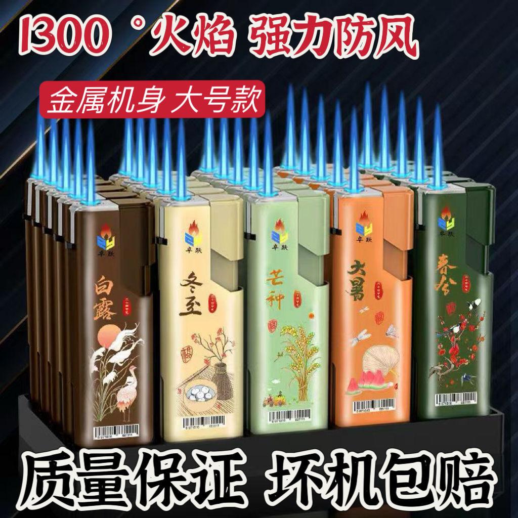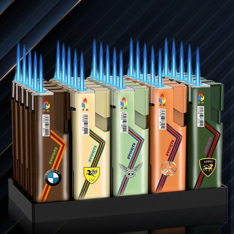 Encendedor de metal recto a prueba de viento de 50 pulgadas, inflable, de llama azul, grueso, a prueba de explosiones, barato, al por mayor, duradero, súper especial