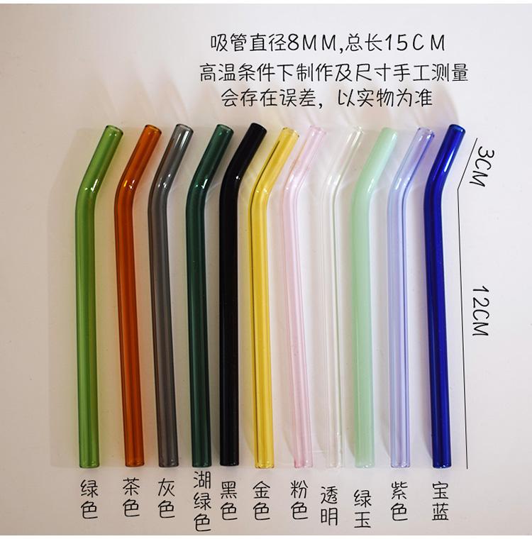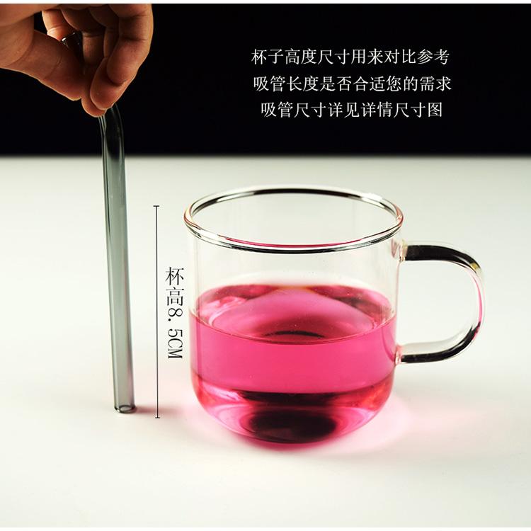Pajita de cristal de 15 cm, corta, pequeña, transparente, respetuosa con el medio ambiente, resistente a altas temperaturas, para bebidas lácteas, juego de codos, no desechable
