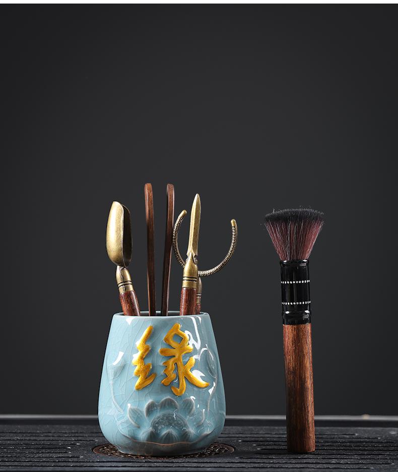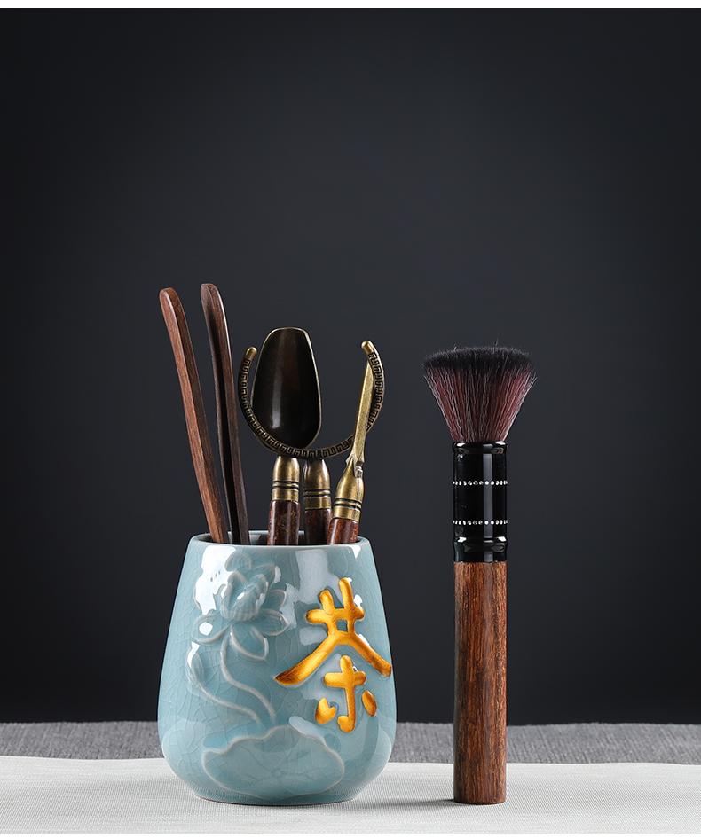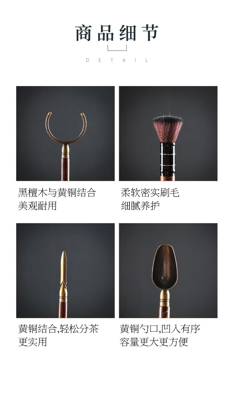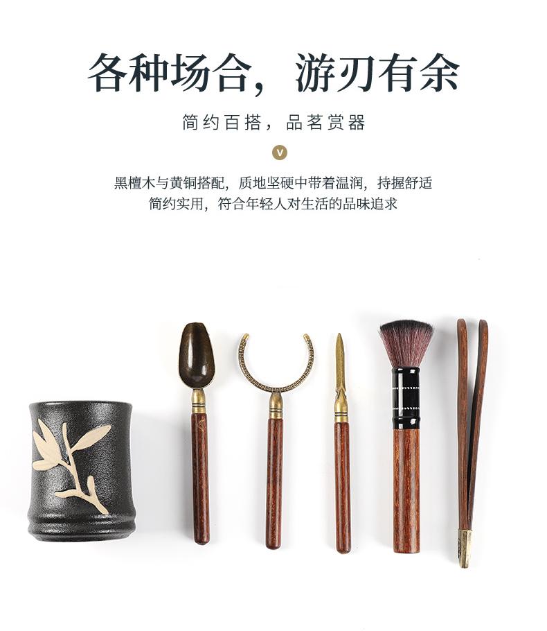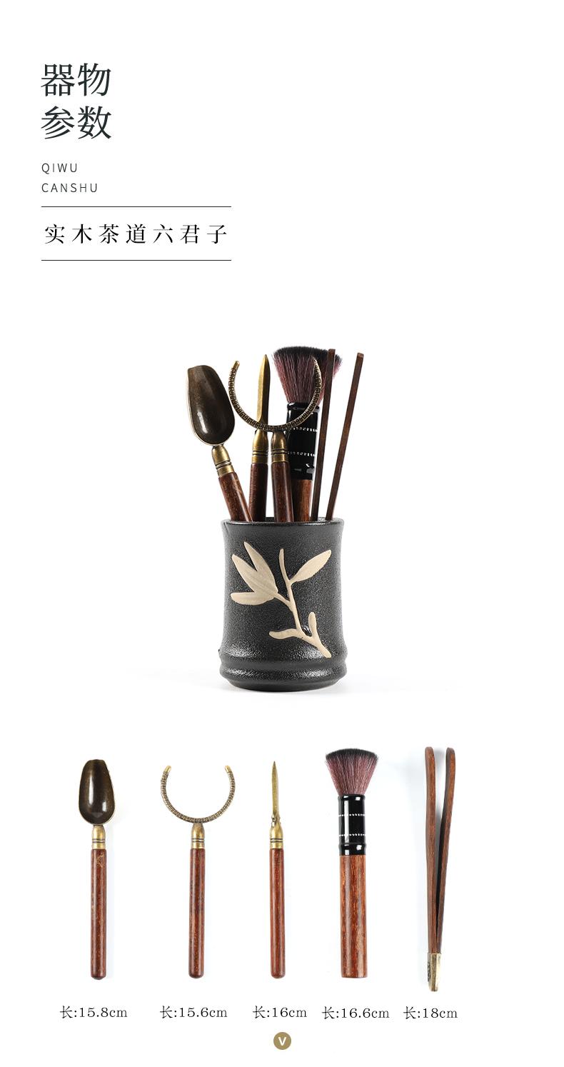 Ceremonia del té Juego de ébano para seis caballeros Limpieza del juego de té Mesa de té Piezas de arte del té Herramientas Adornos Clip de té