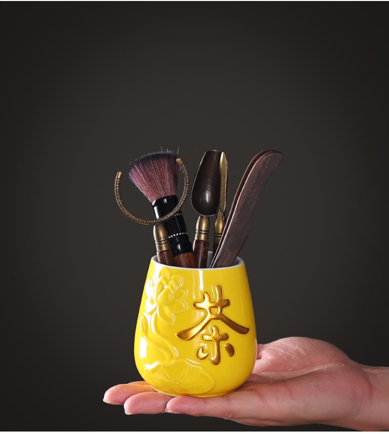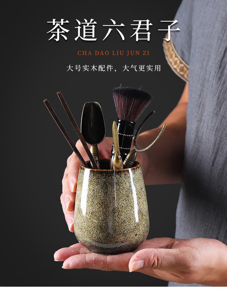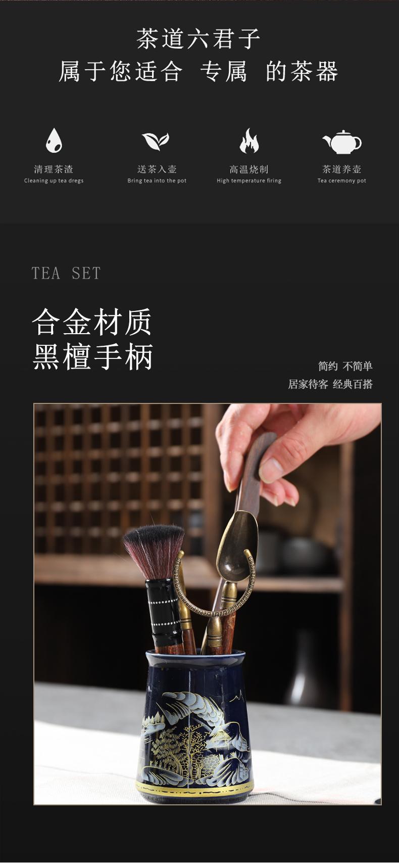 Suet Jingzi-Six Gentlemen, Shanshui Tegong Tea Ceremony + Shanshui Tea Wash, Black Pottery Bag-Six Gentlemen, ...