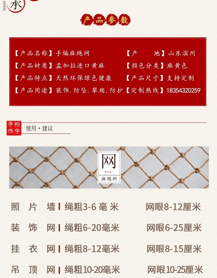 Red decorativa de cuerda de cáñamo, red de protección para techo, barra de pared, partición, cerca de escalada, red tejida, red colgante