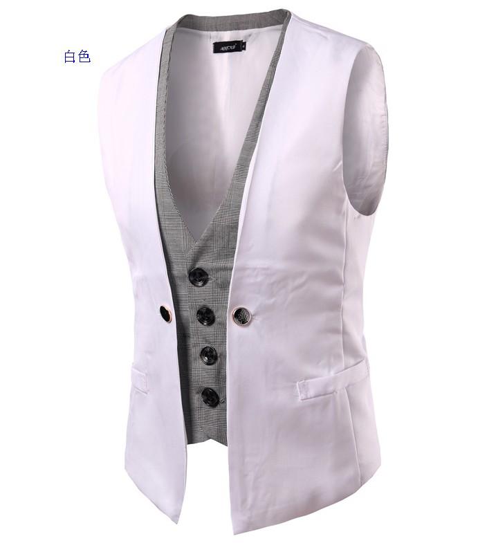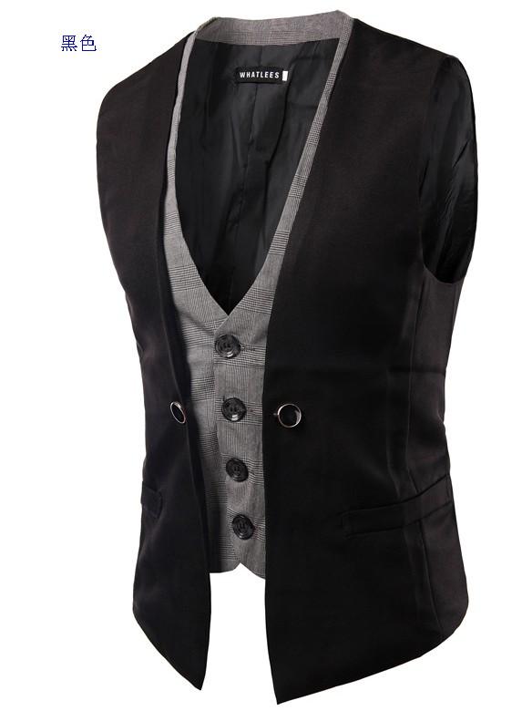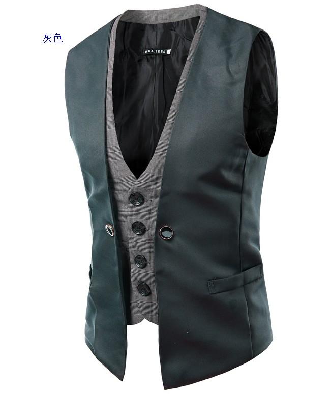 Chaleco informal de cinco colores con costura a cuadros para hombre, de dos piezas, con botonadura sencilla, ajustado, para otoño e invierno.