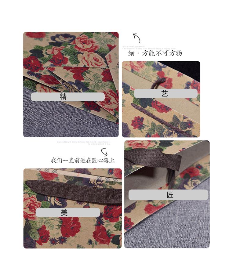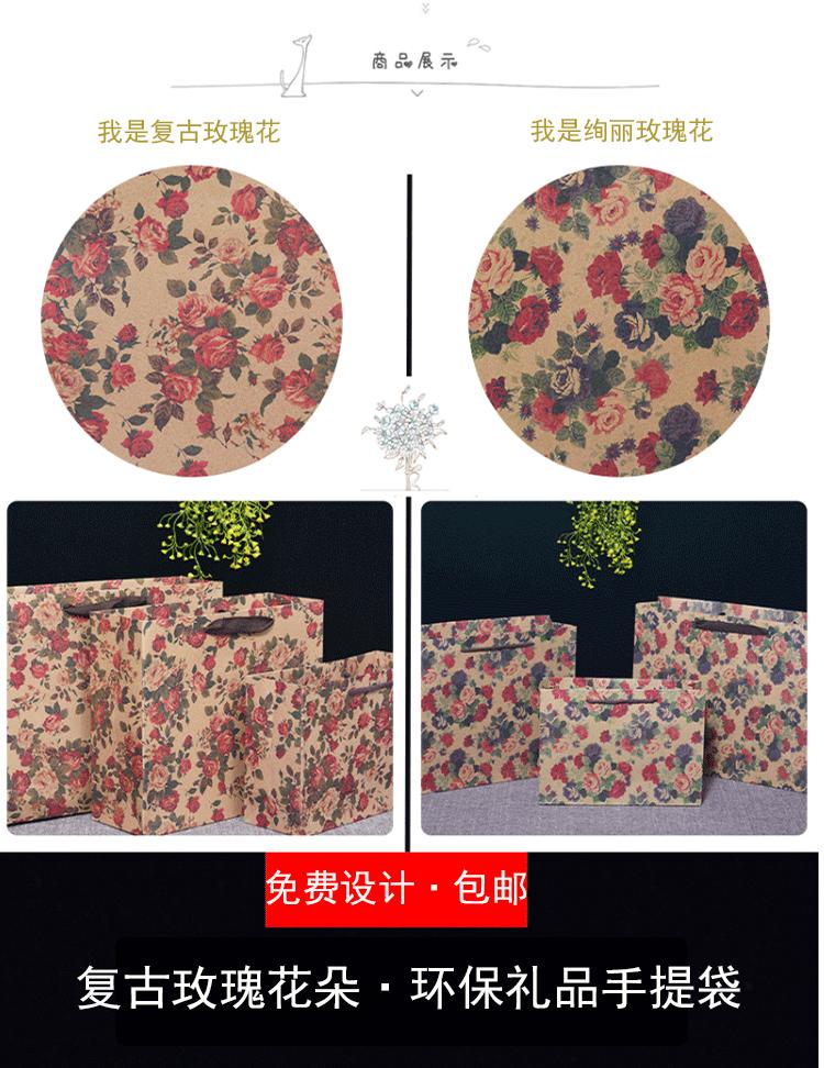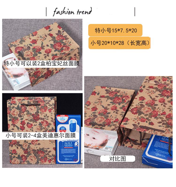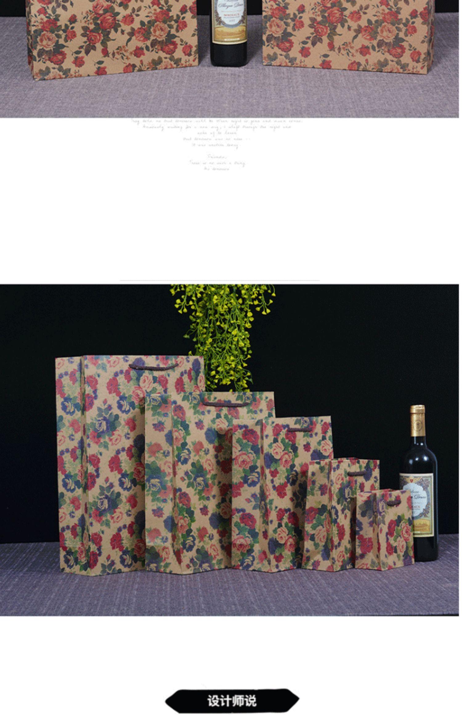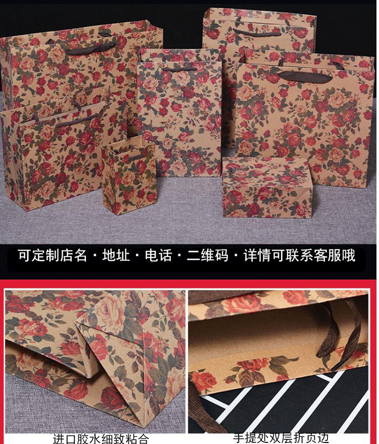 Bolsa de Papel Kraft para Regalo con Estampado de Rosa Vintage Joyería Máscara Portátil Ropa Ropa de Mujer Tienda