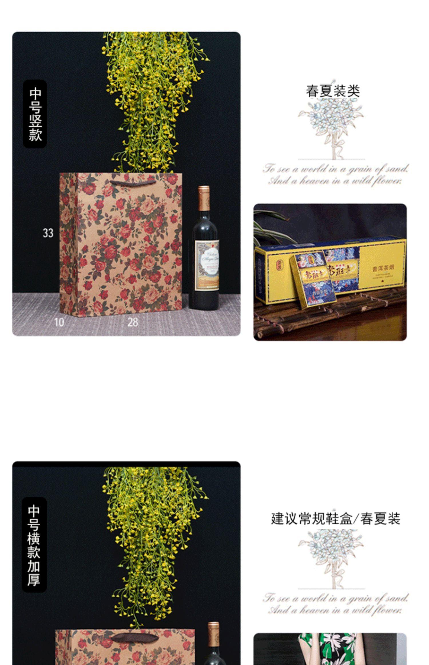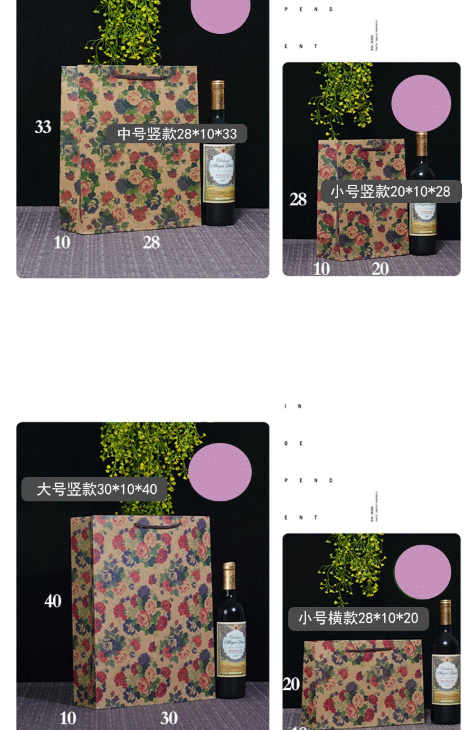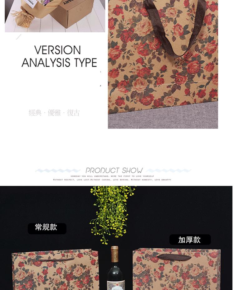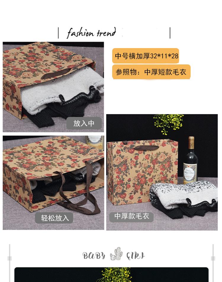 Bolsa de Papel Kraft para Regalo con Estampado de Rosa Vintage Joyería Máscara Portátil Ropa Ropa de Mujer Tienda