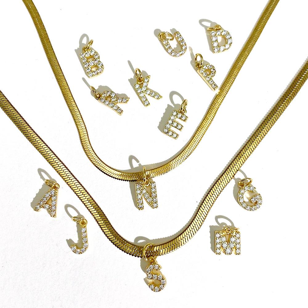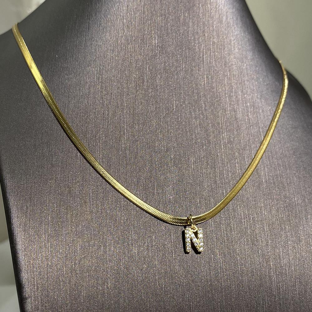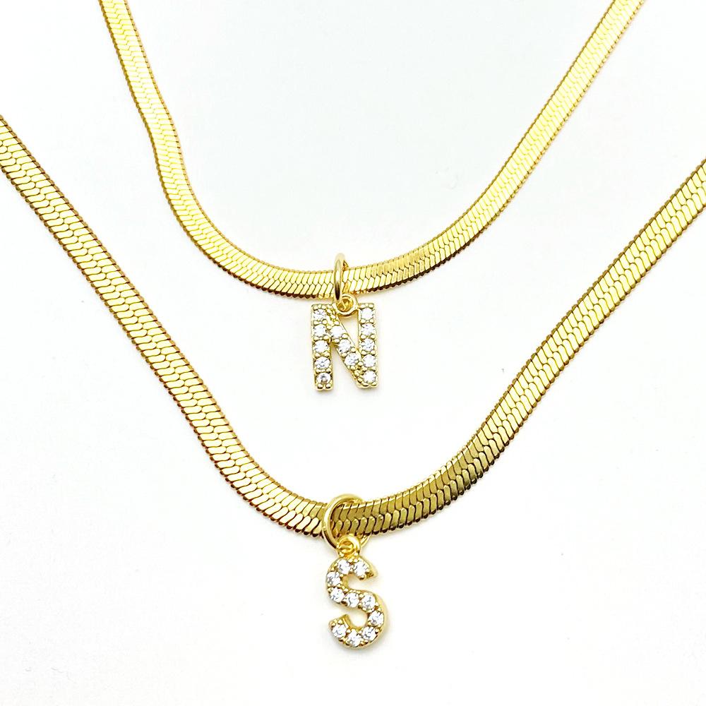 Flat snake chain length 45cm 5cm extension, Spring buckle letter pendant A, Spring buckle letter pendant B, Sp...