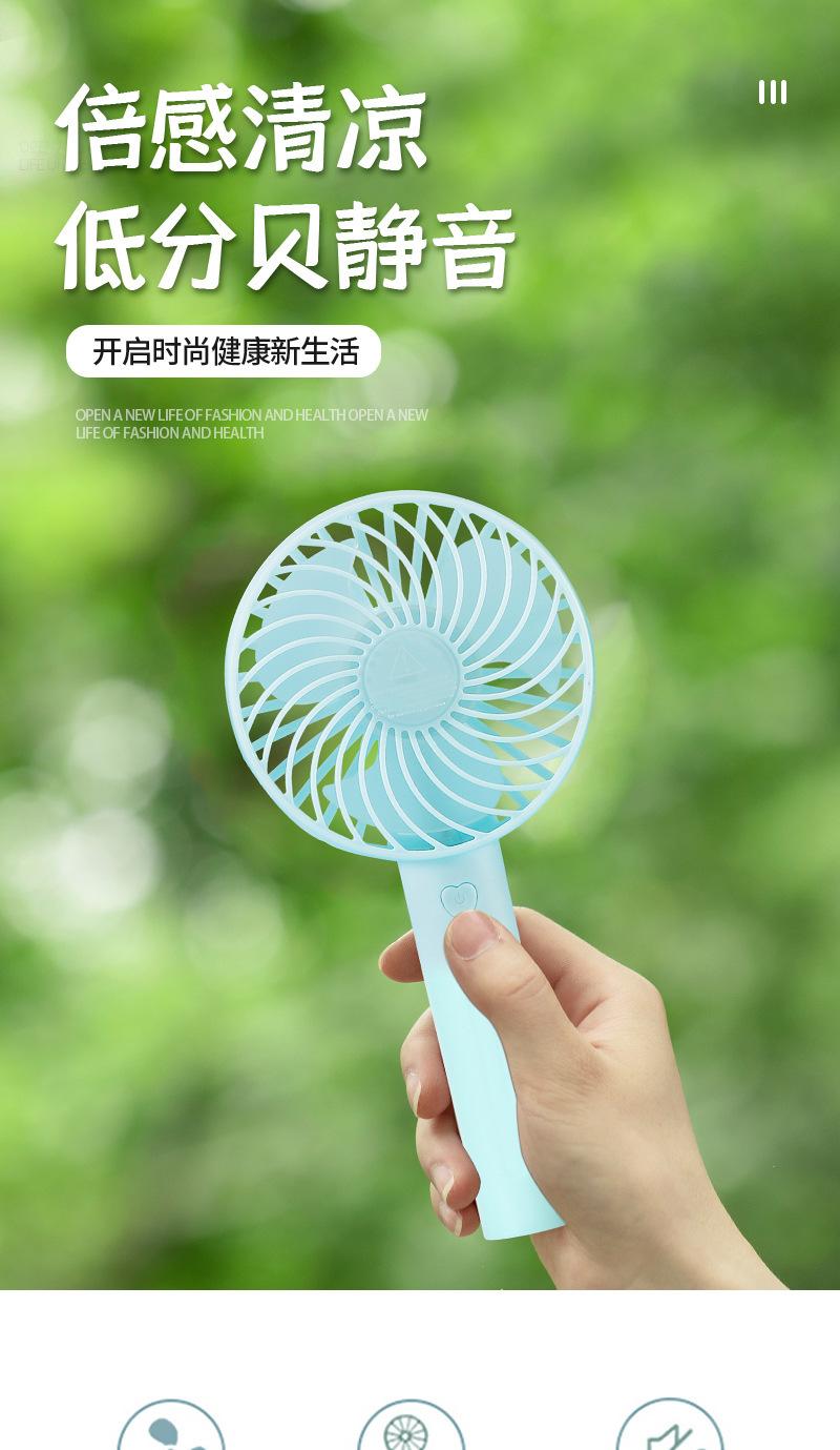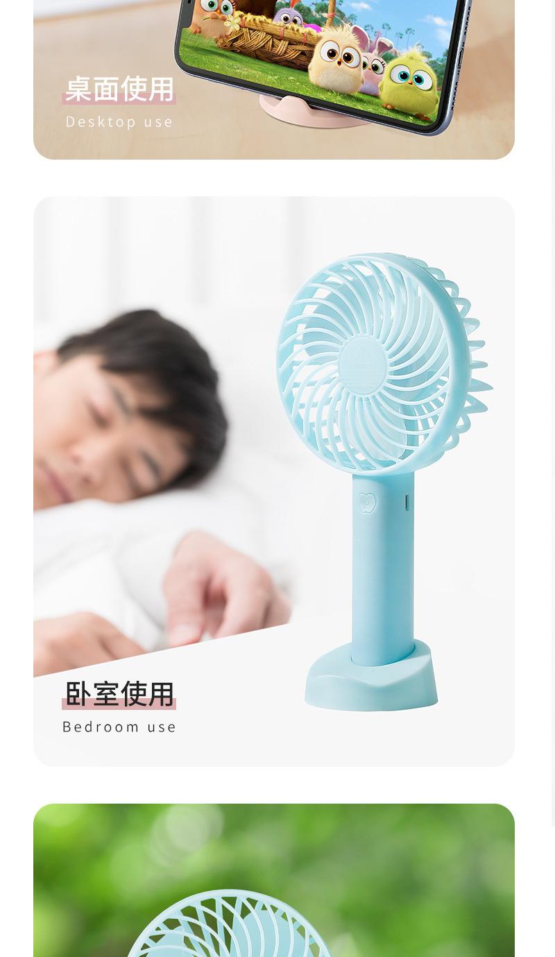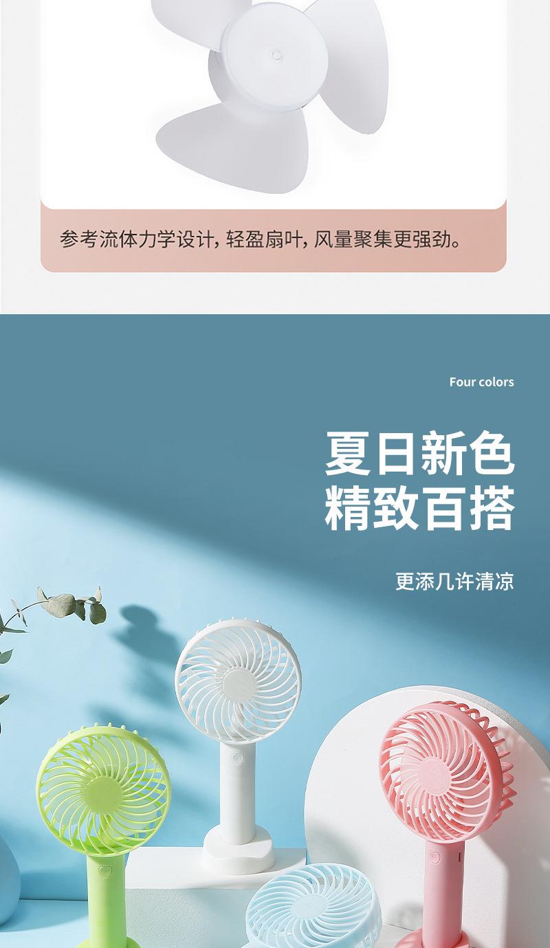 Características del producto: ventilador pequeño de mano de estilo moderno y simple, mini ventilador de mano portátil para exteriores con carga USB, 3 niveles de ajuste de alta velocidad del viento, capacidad de 800 mAh y capacidad de 2000 mAh, con una base que se puede usar como soporte para teléfono móvil, la estructura del deflector de viento combina diseño ergonómico, rejilla engrosada, doble protección y las aspas del ventilador no son fáciles de tocar; mini y compacto, fácil de transportar, se puede llevar con usted ya sea en un viaje de negocios o fuera, no ocupa espacio; ventilador pequeño dos en uno de mano de escritorio, gran stock, admite impresión de logotipos de regalo, ¡invitamos a nuevos y antiguos clientes a realizar pedidos!