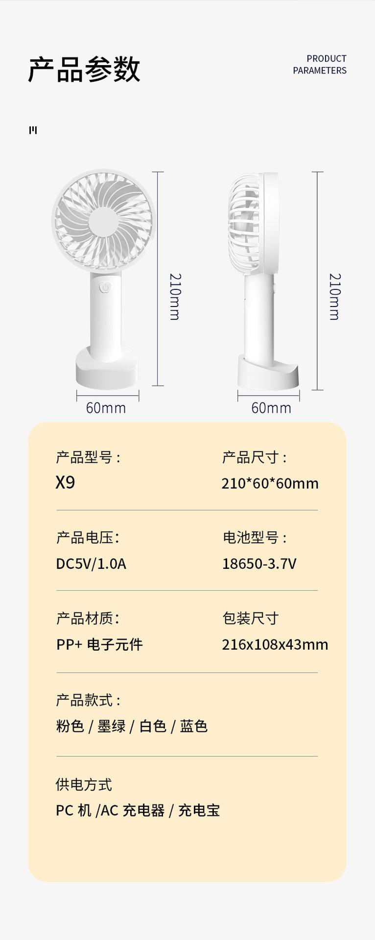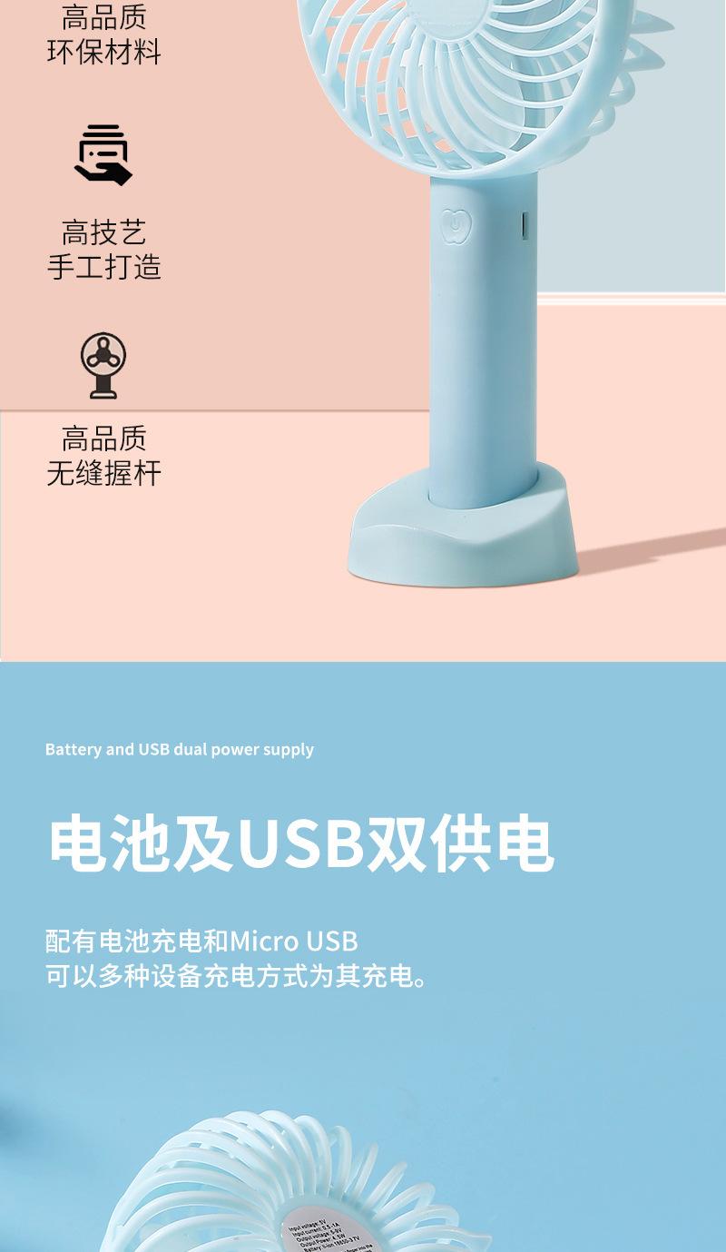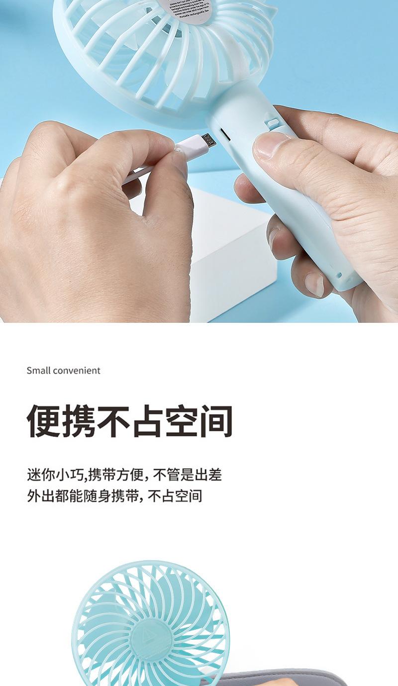 Características del producto: ventilador pequeño de mano de estilo moderno y simple, mini ventilador de mano portátil para exteriores con carga USB, 3 niveles de ajuste de alta velocidad del viento, capacidad de 800 mAh y capacidad de 2000 mAh, con una base que se puede usar como soporte para teléfono móvil, la estructura del deflector de viento combina diseño ergonómico, rejilla engrosada, doble protección y las aspas del ventilador no son fáciles de tocar; mini y compacto, fácil de transportar, se puede llevar con usted ya sea en un viaje de negocios o fuera, no ocupa espacio; ventilador pequeño dos en uno de mano de escritorio, gran stock, admite impresión de logotipos de regalo, ¡invitamos a nuevos y antiguos clientes a realizar pedidos!