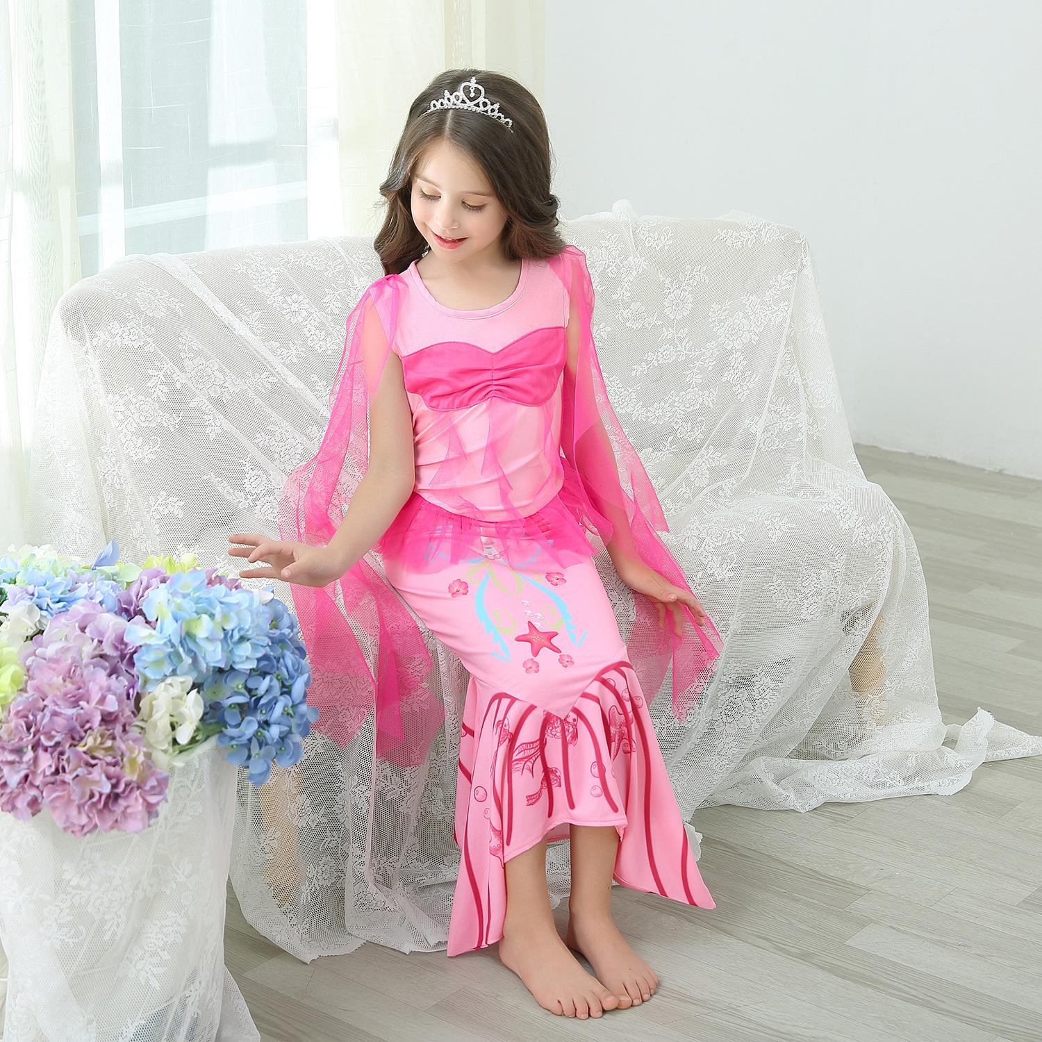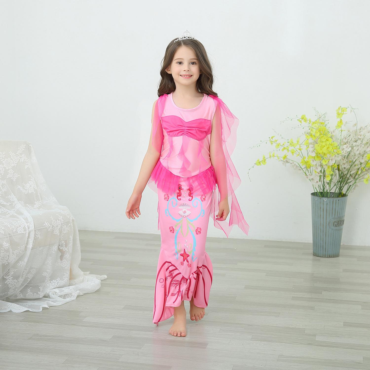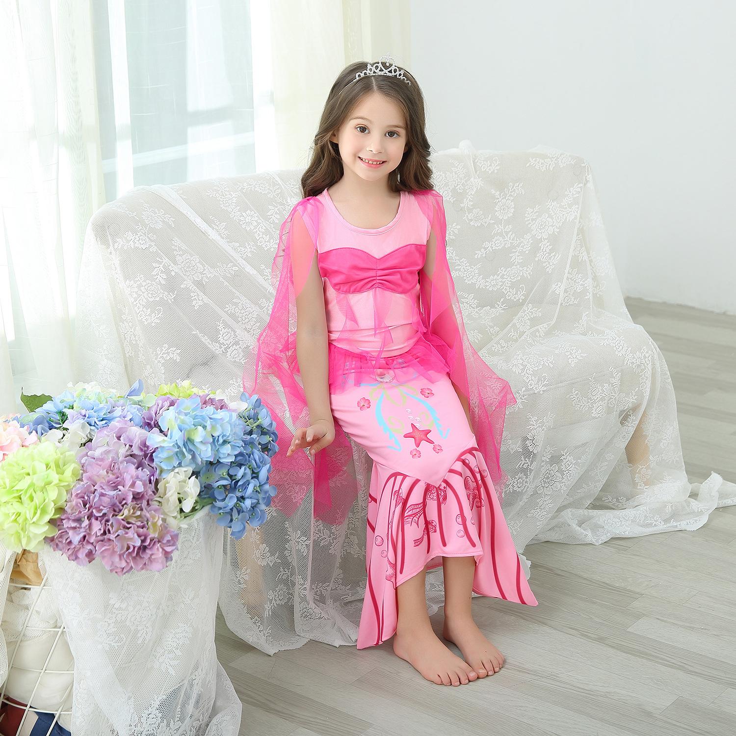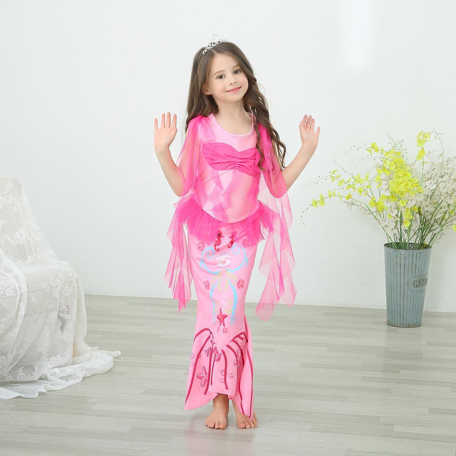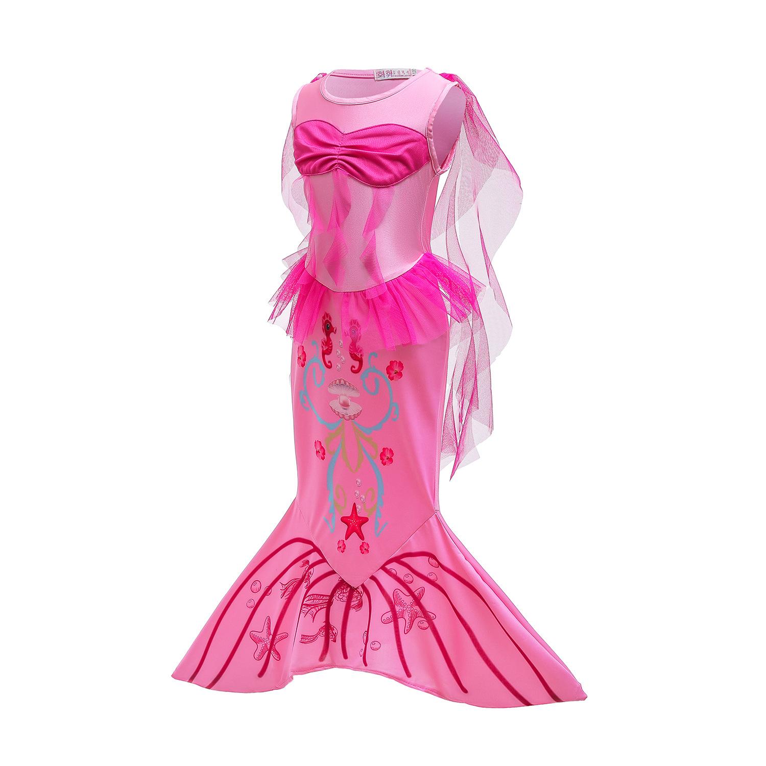 Vestido de princesa sirena para niñas de comercio exterior, vestido de cola de pez para bebé, vestido de baile navideño de primavera y verano