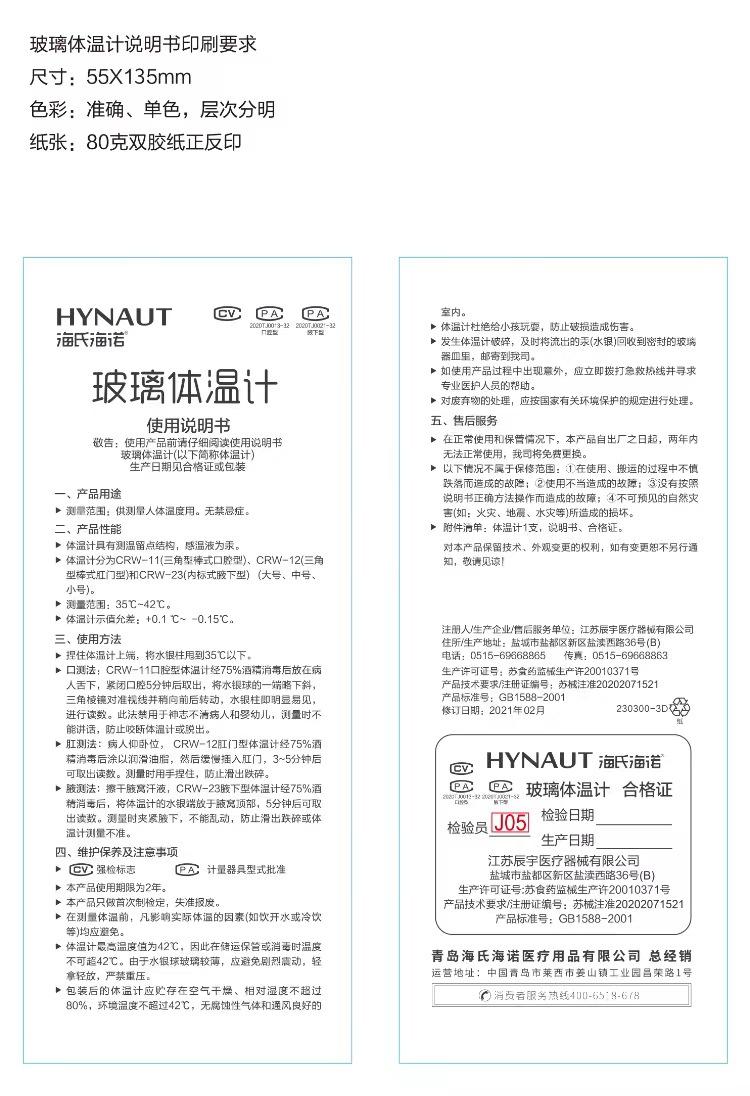 Henuo glass thermometer (mercury-free) [1 piece]]