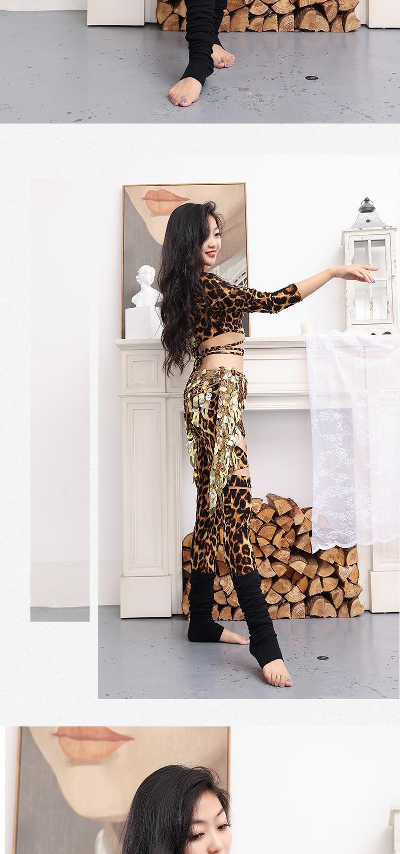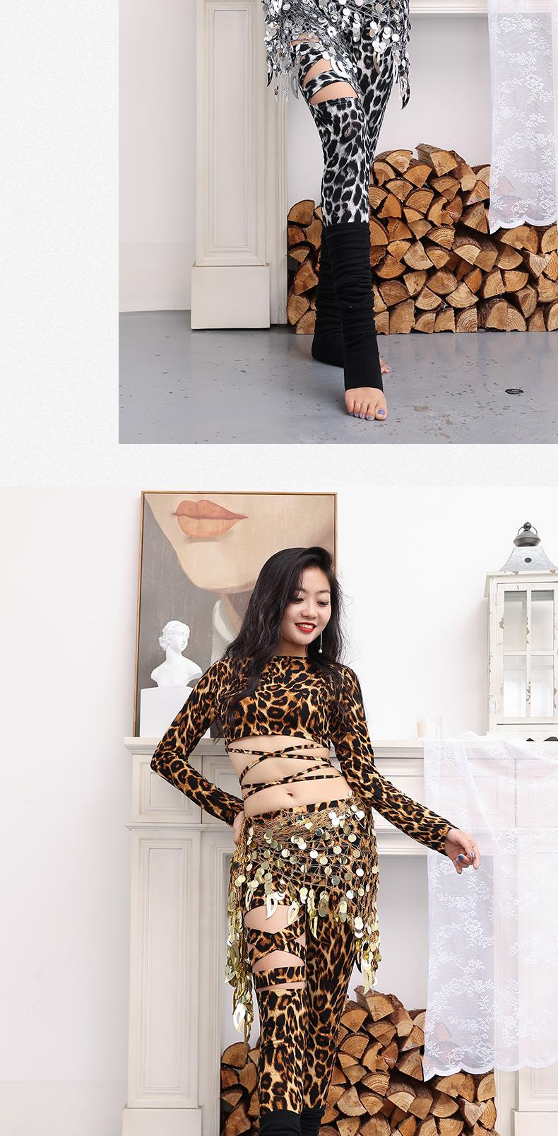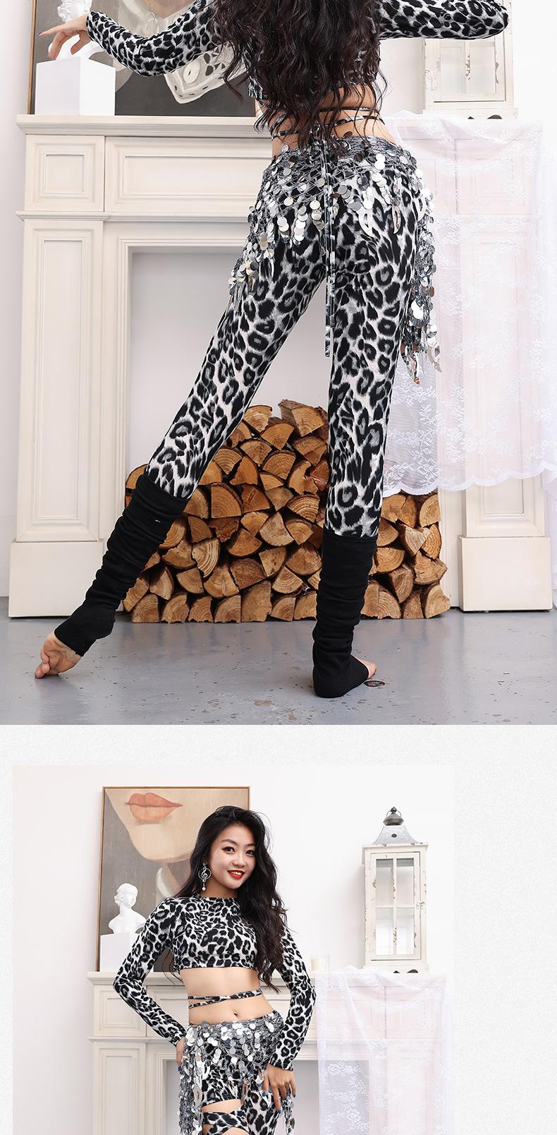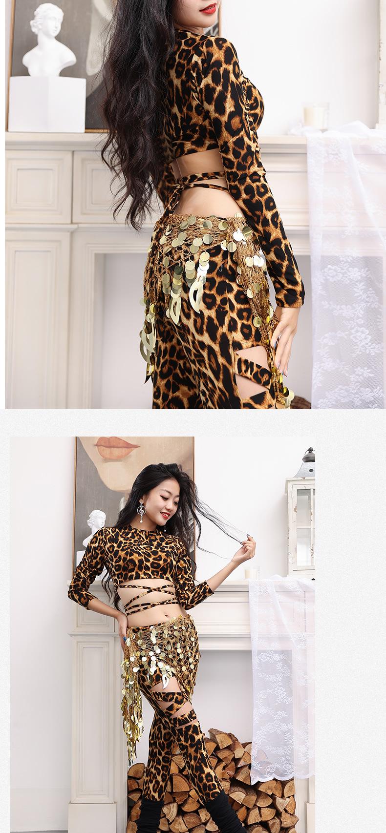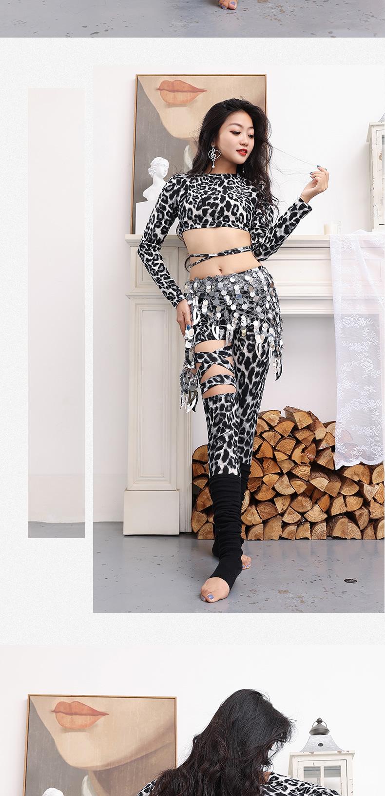 Chaqueta y pantalones de danza del vientre para bailarina, con estampado de leopardo, ropa sexy para principiantes, ropa de práctica para grupos, 263 318#