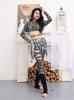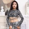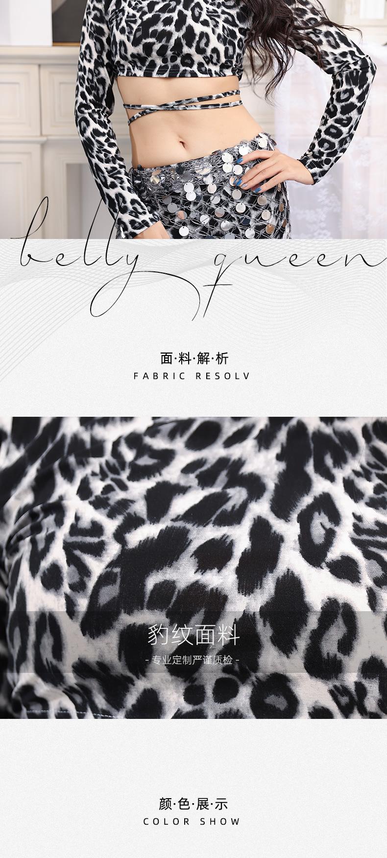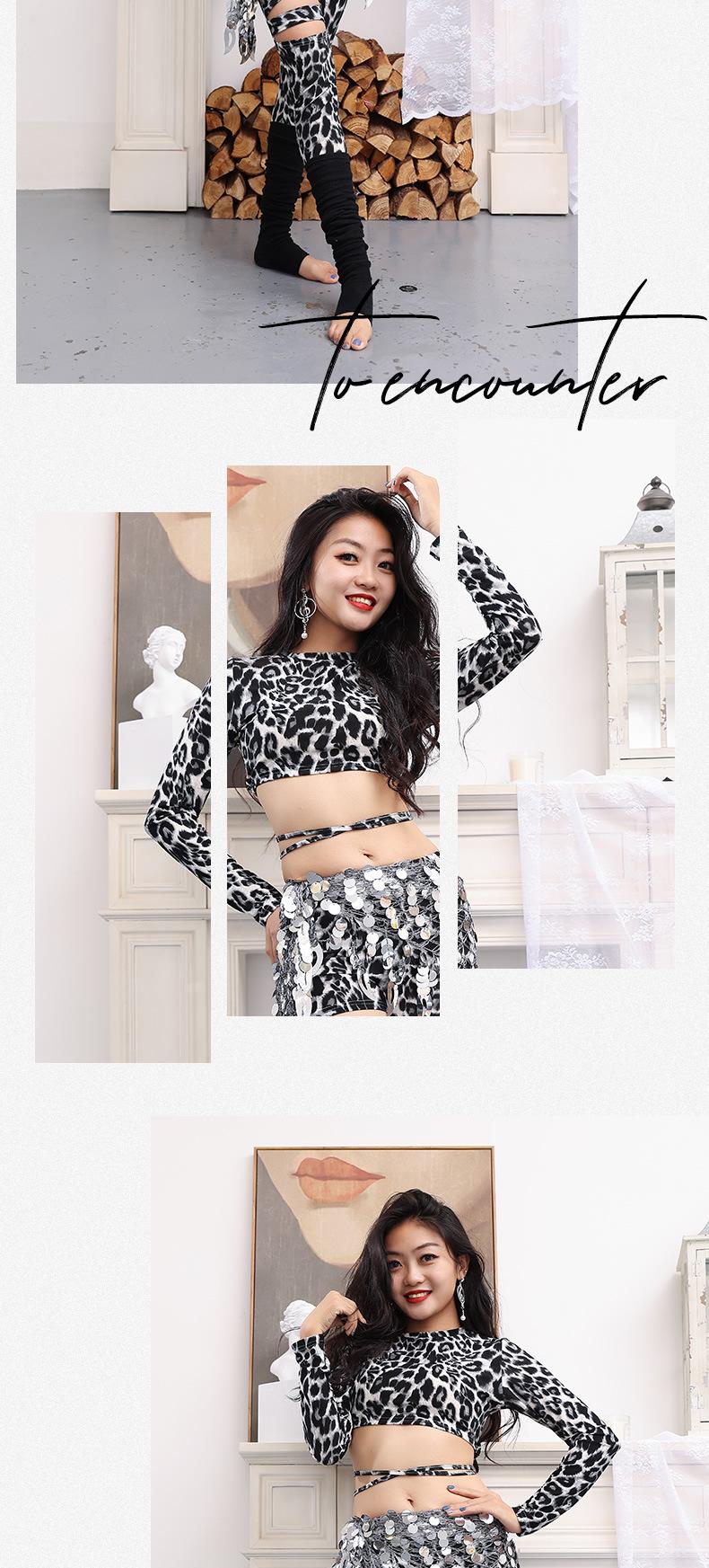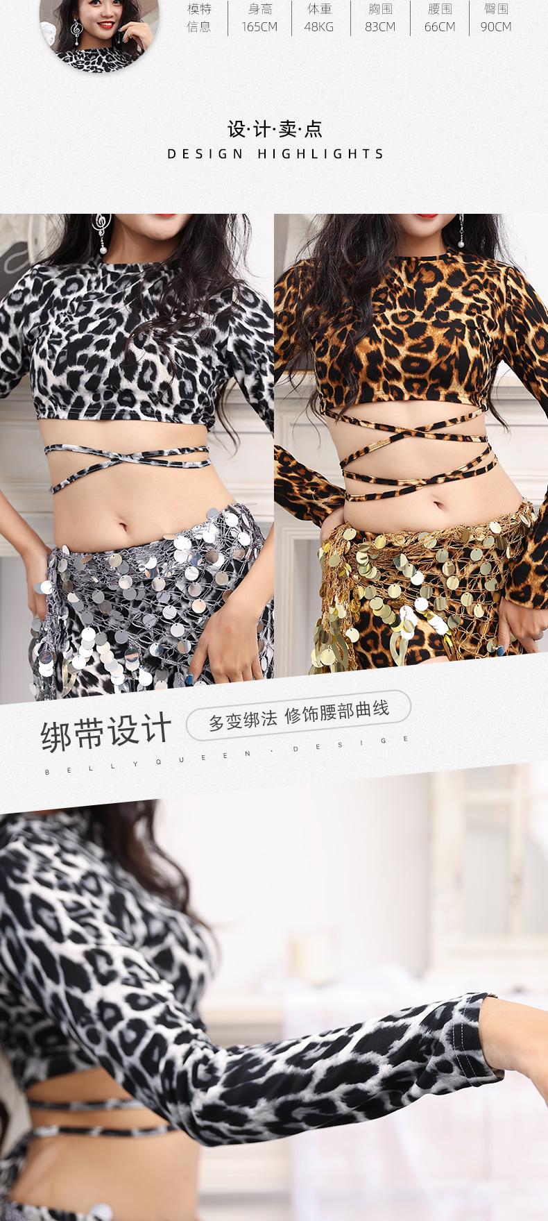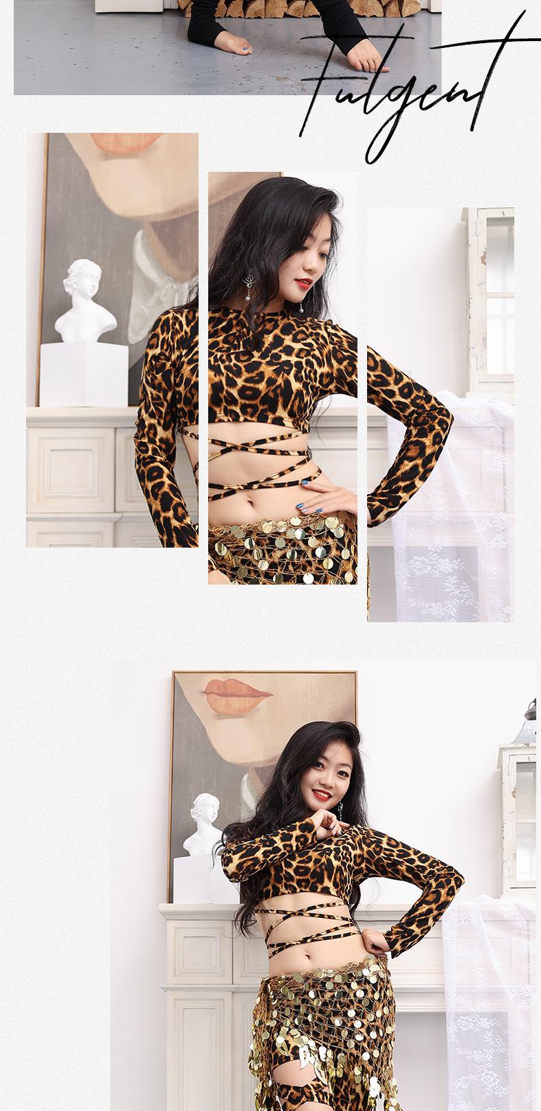 Chaqueta y pantalones de danza del vientre para bailarina, con estampado de leopardo, ropa sexy para principiantes, ropa de práctica para grupos, 263 318#