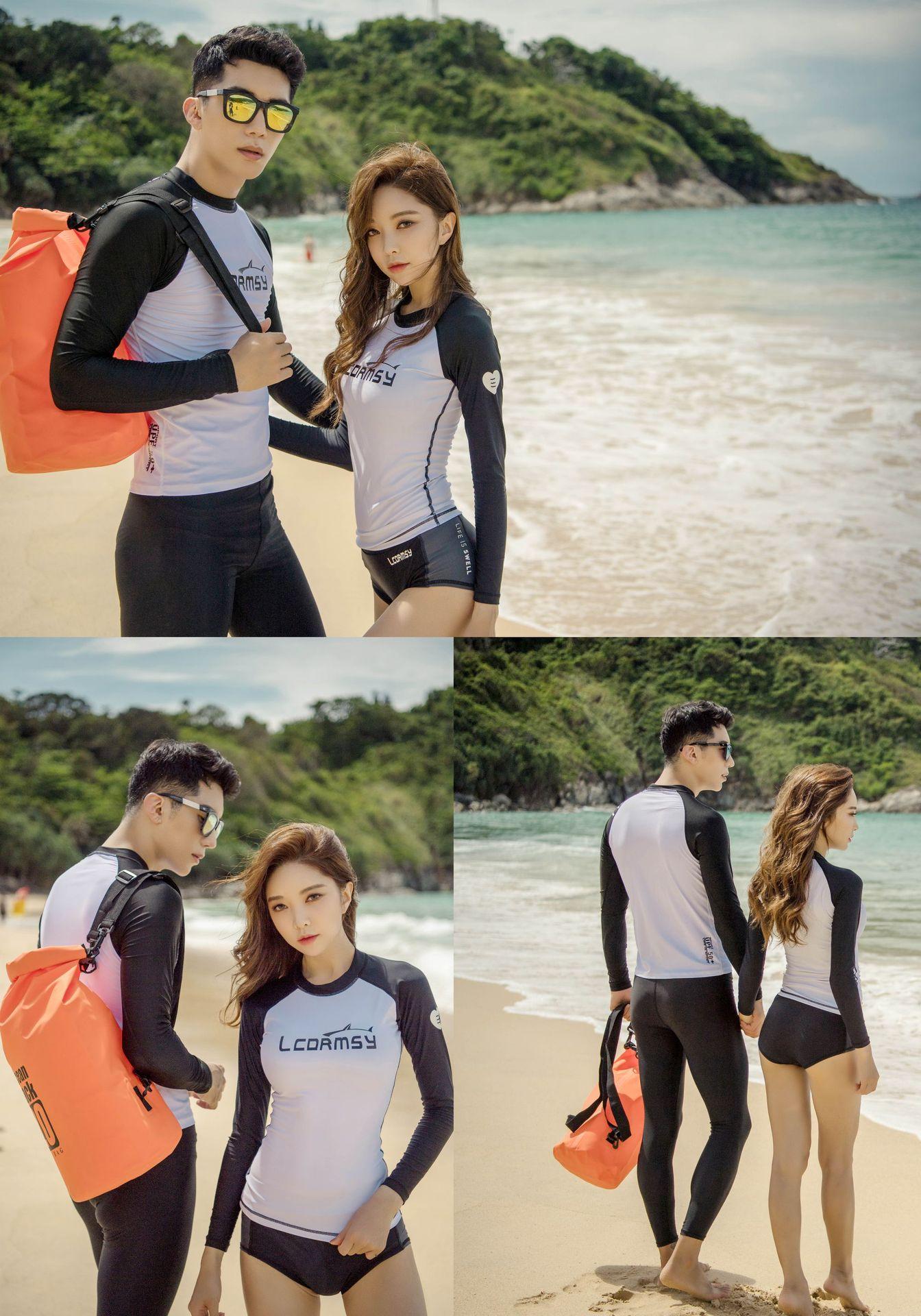 Traje de buceo coreano para hombre y mujer traje de medusa secado rápido protector solar esnórquel manga larga con almohadilla en el pecho traje dividido para amantes traje de surf