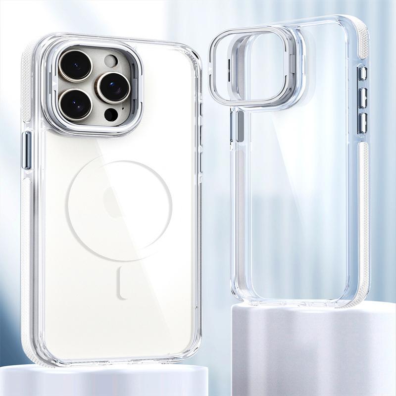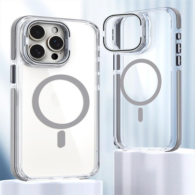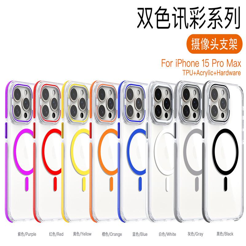 Compra Funda bicolor para iPhone 16 Pro Max, soporte para lente Apple 15, funda protectora transparente 14 y 13. al por mayor en Joom.pro