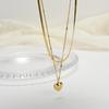 Collar de Acero de Titanio Corazón de Amor Doble Capa para Mujer Apilado con Cadena de Clavícula Versátil Personalizada Acero Inoxidable Colgante Corazón de Melocotón Estéreo