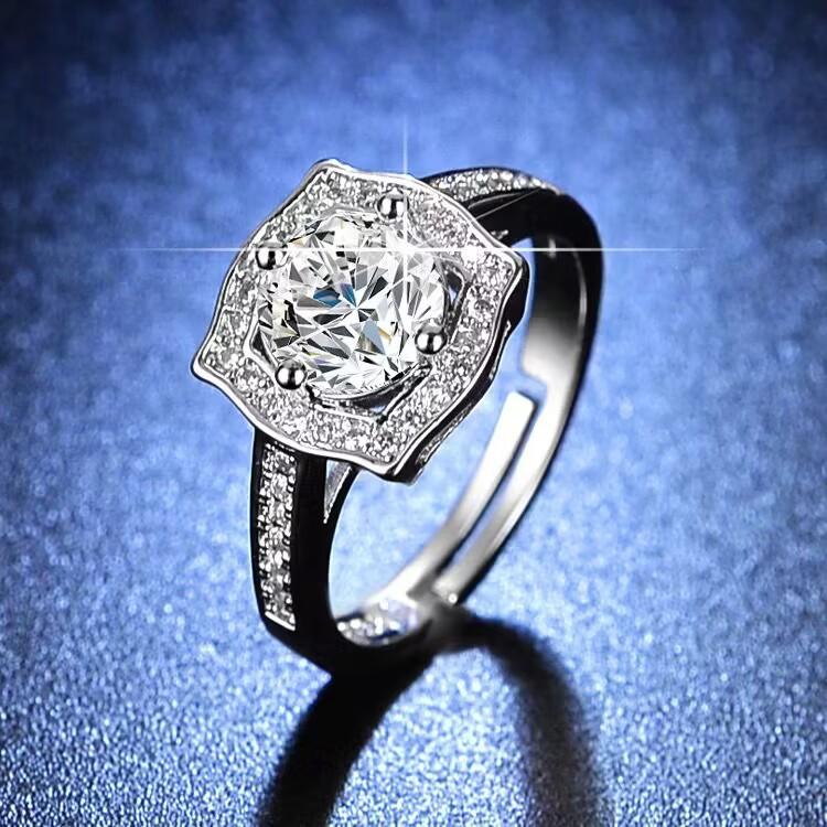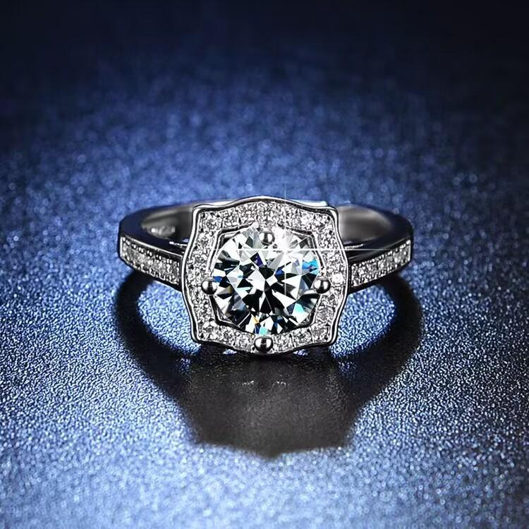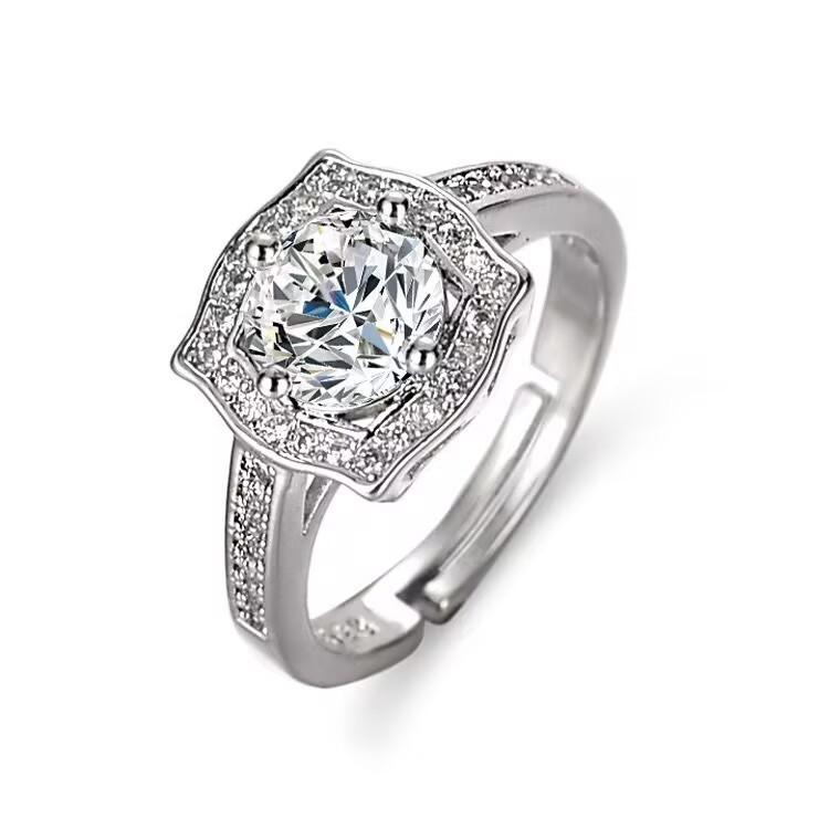 Anillo de diamantes cuadrados princesa de color platino con baño de moda para mujer, anillo de diamantes de 1 quilate, venta directa de fábrica.