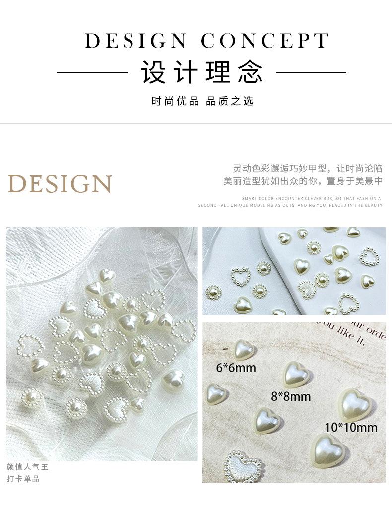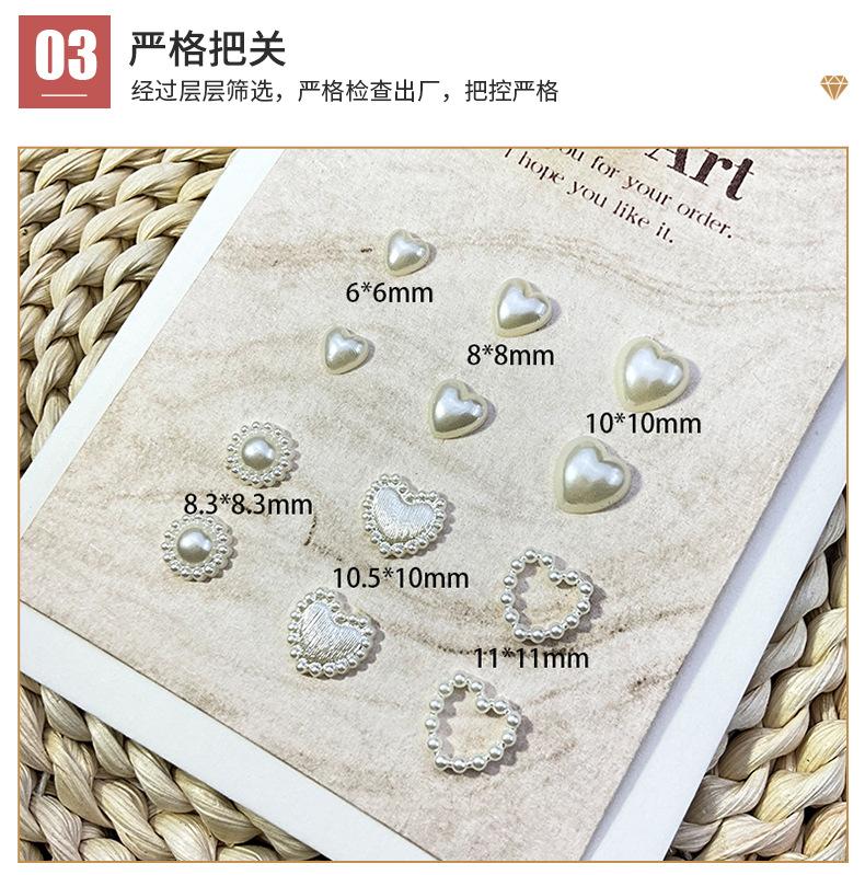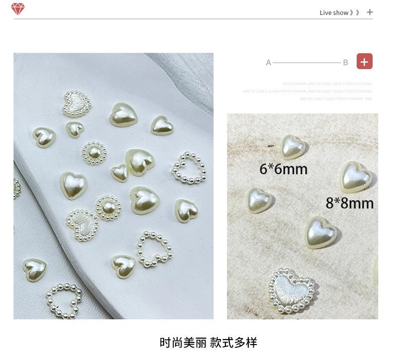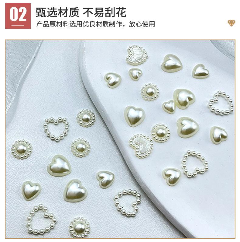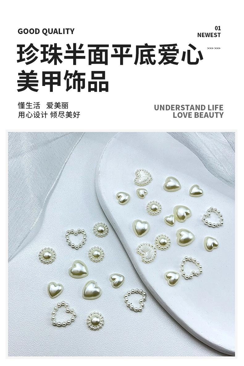 Broca de joyería para arte de uñas perla blanca arroz mixta fondo medio plano amor DIY accesorios para uñas hechos a mano explosiones transfronterizas