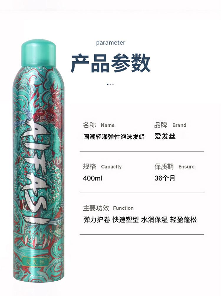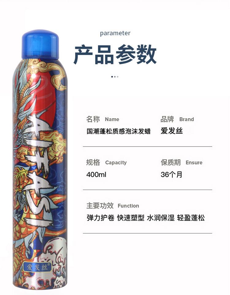 Love Hair Guochao Cera para el Cabello en Espuma Textura Esponjosa Elastina Hidratante Protector de Rizos Mousse en Burbujas Laca para el Cabello Estilizado Salón de Belleza