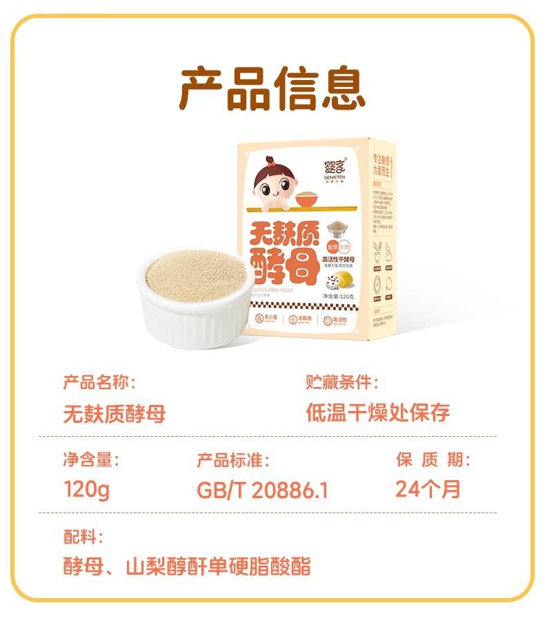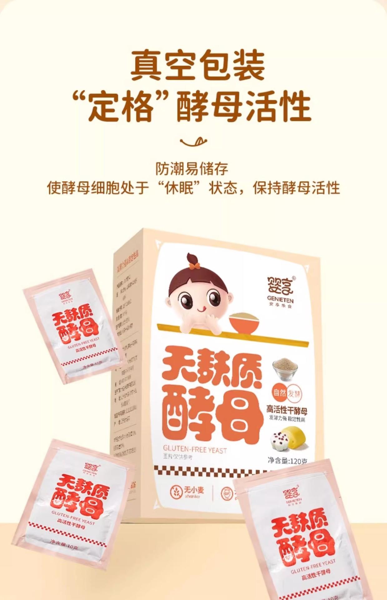 As of august 27th, gluten-free yeast 120g (12 packets)/box