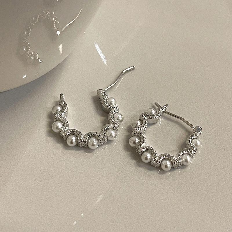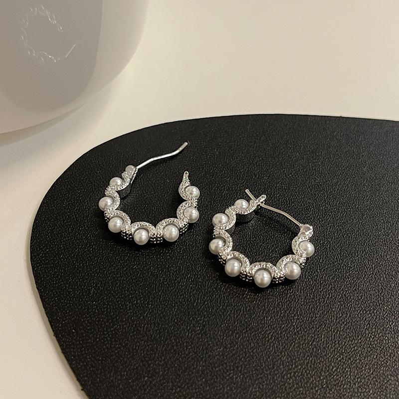 Pendientes de perlas circulares de diseño nicho de lujo ligero de Corea del Sur, nuevos y únicos pendientes vintage para mujer.
