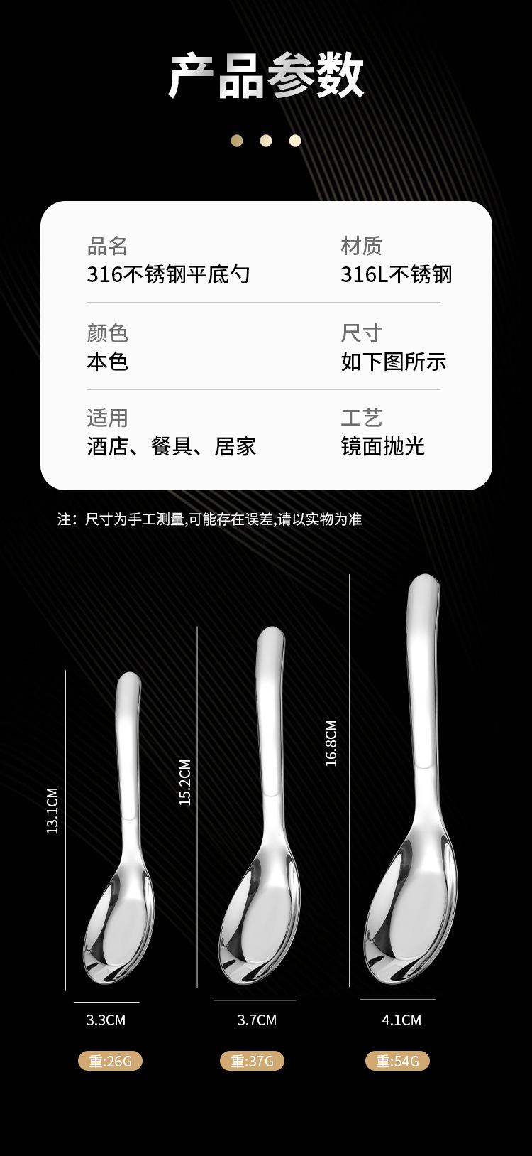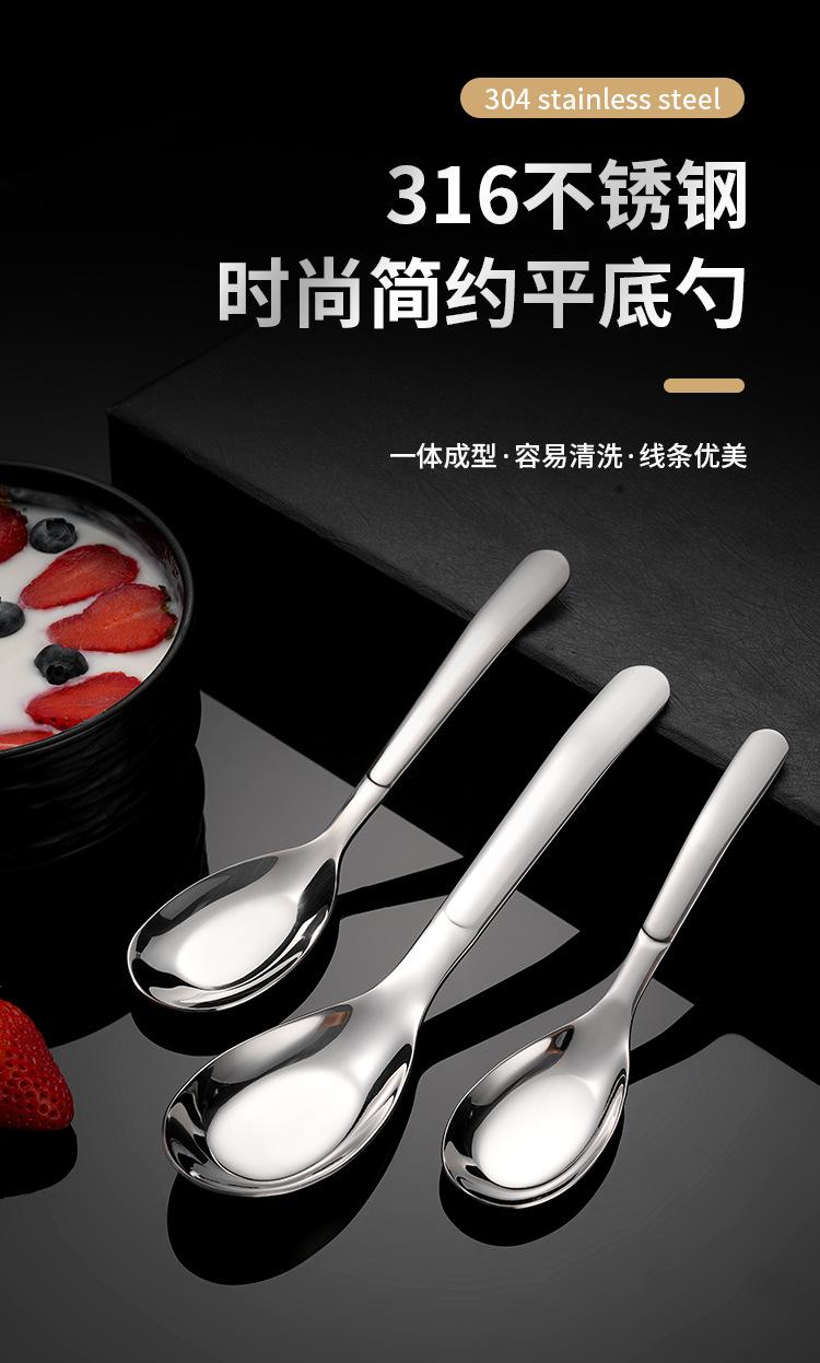 316 steel small flat spoon, 316 steel medium flat spoon, 316 steel large flat bottom spoon