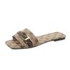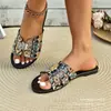 Sandalias y zapatillas de moda de talla grande de comercio exterior para mujer, nuevo atuendo de verano 2024, sandalias y zapatillas planas de metal de una sola palabra para mujer