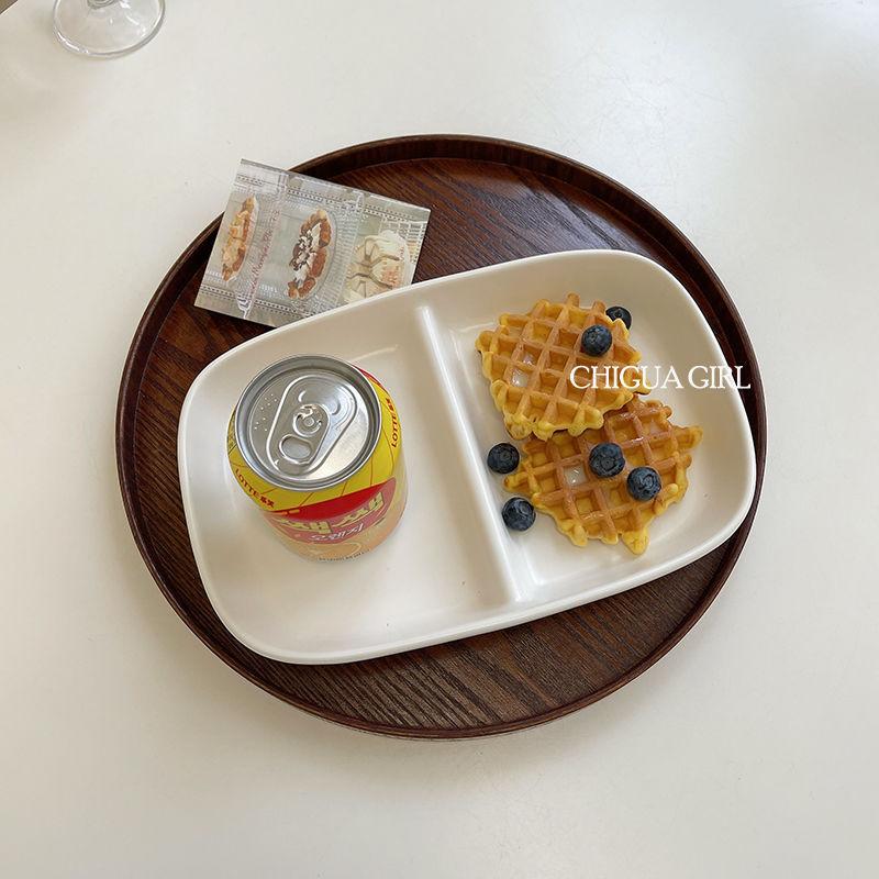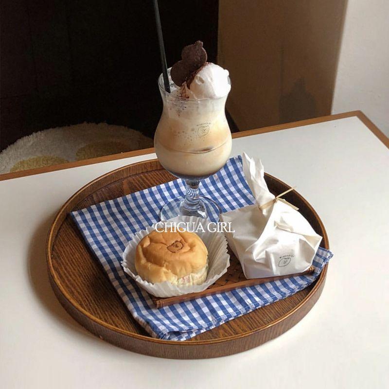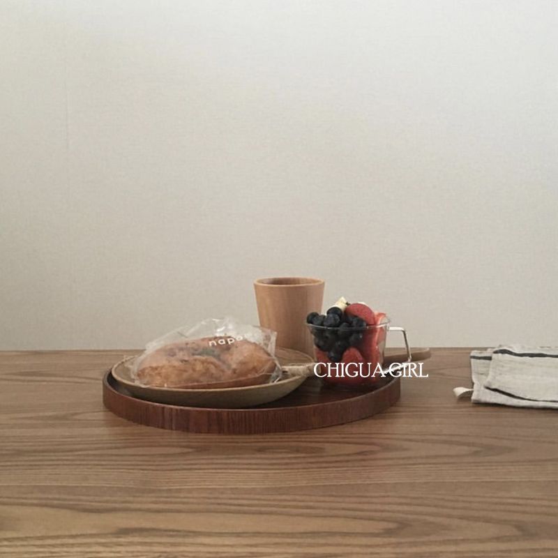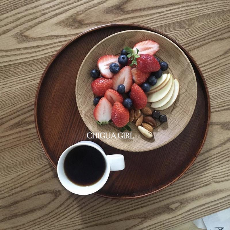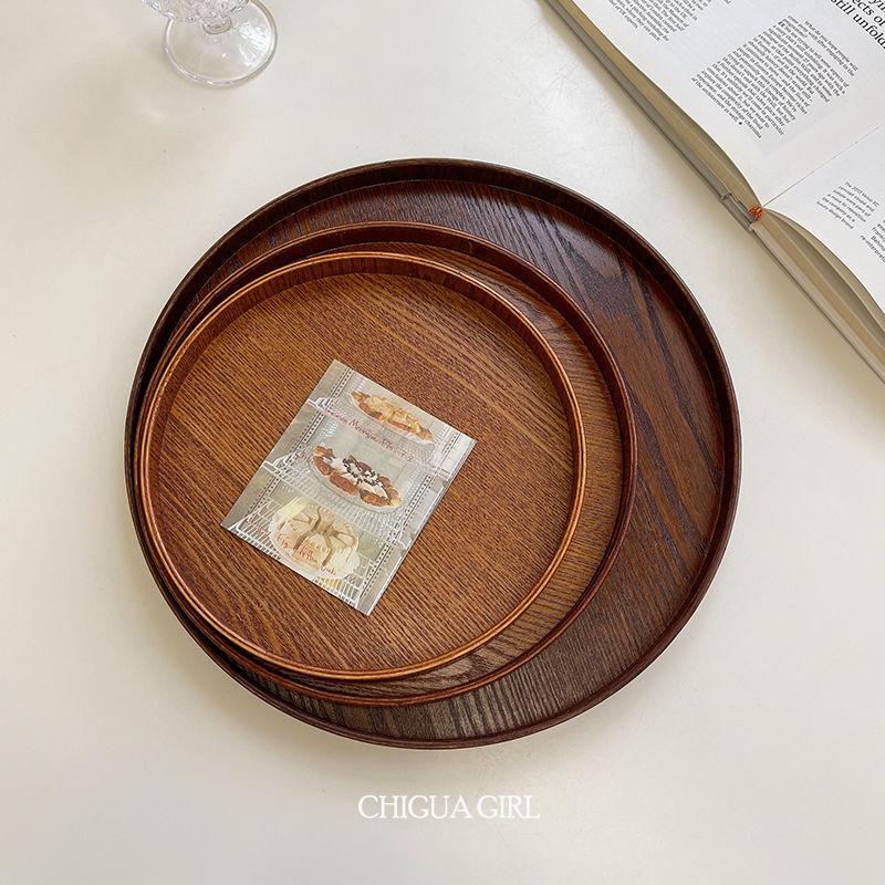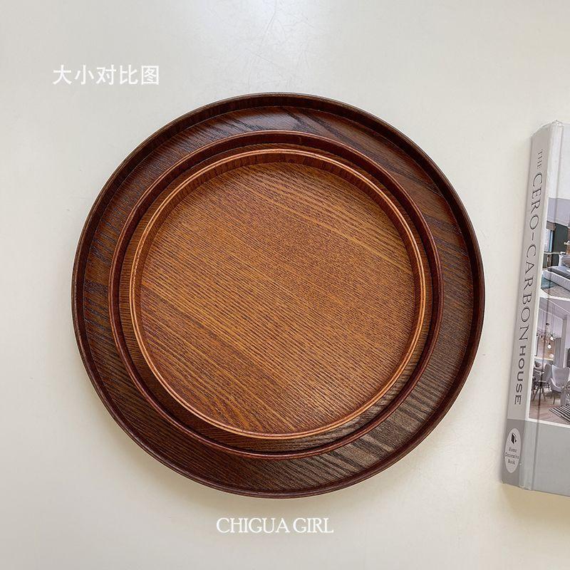 Bandeja de madera maciza estilo Ins Bandeja redonda de madera para almacenar café y frutas Bandeja de madera Adornos fotográficos