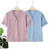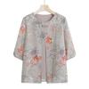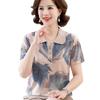 Camiseta de Verano de Manga Corta de Seda de Hielo para Mamá, Tops de Verano Coloridos para Mujeres de Mediana Edad y Mayores a la Moda, Camiseta con Solapa de Abuela
