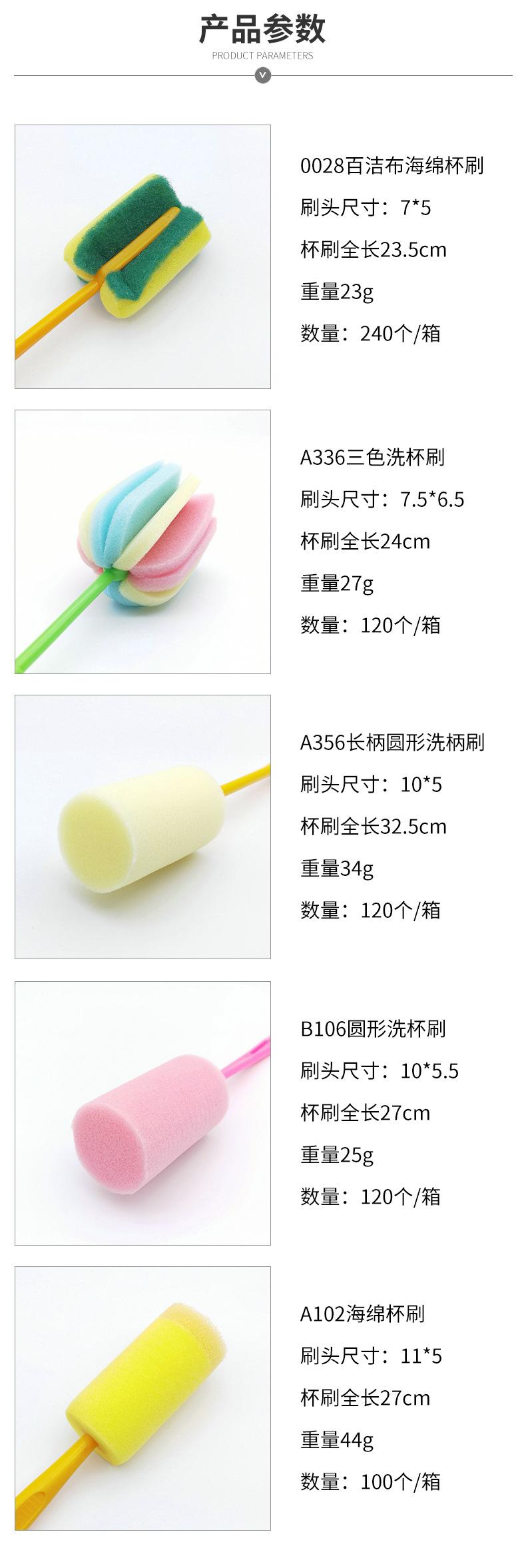 A102 sponge Cup brush, 0028 scouring pad sponge Cup brush, A356 long handle round handle brush, B106 round wash cup brush
