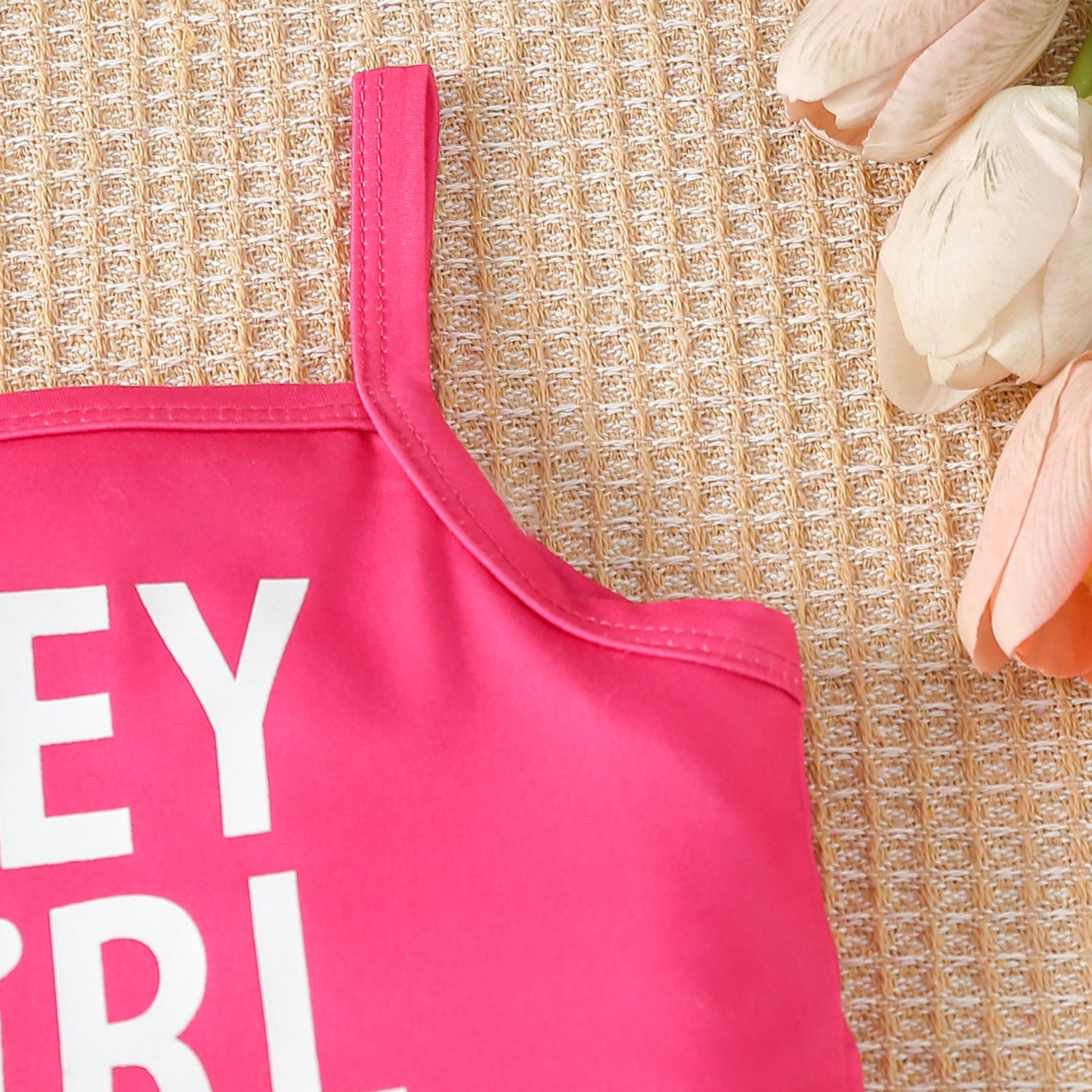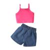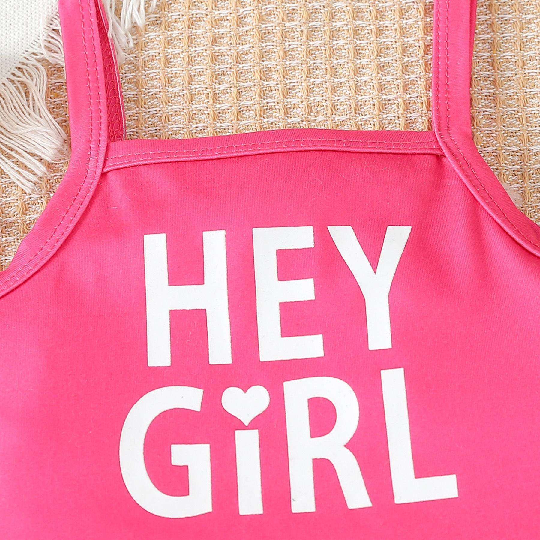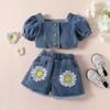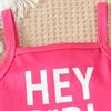 Ropa infantil de comercio exterior de 2025 nuevo peto estampado con letras para niñas parche de amor traje de shorts de mezclilla