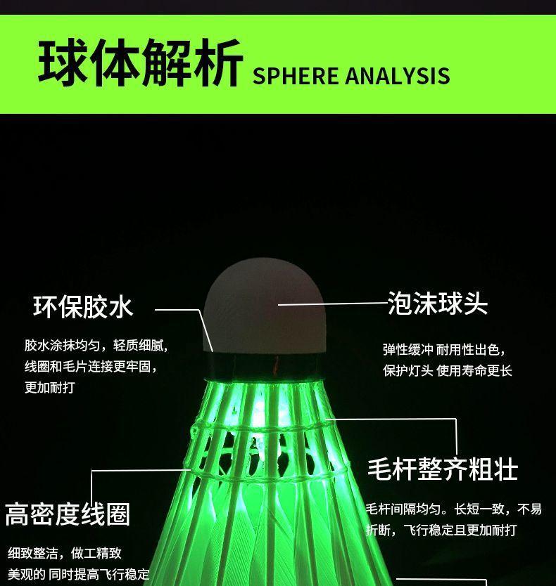 Bádminton luminoso de uso nocturno, color luminoso, resistente al viento, luz fluorescente, bádminton con luz LED, envío gratuito.
