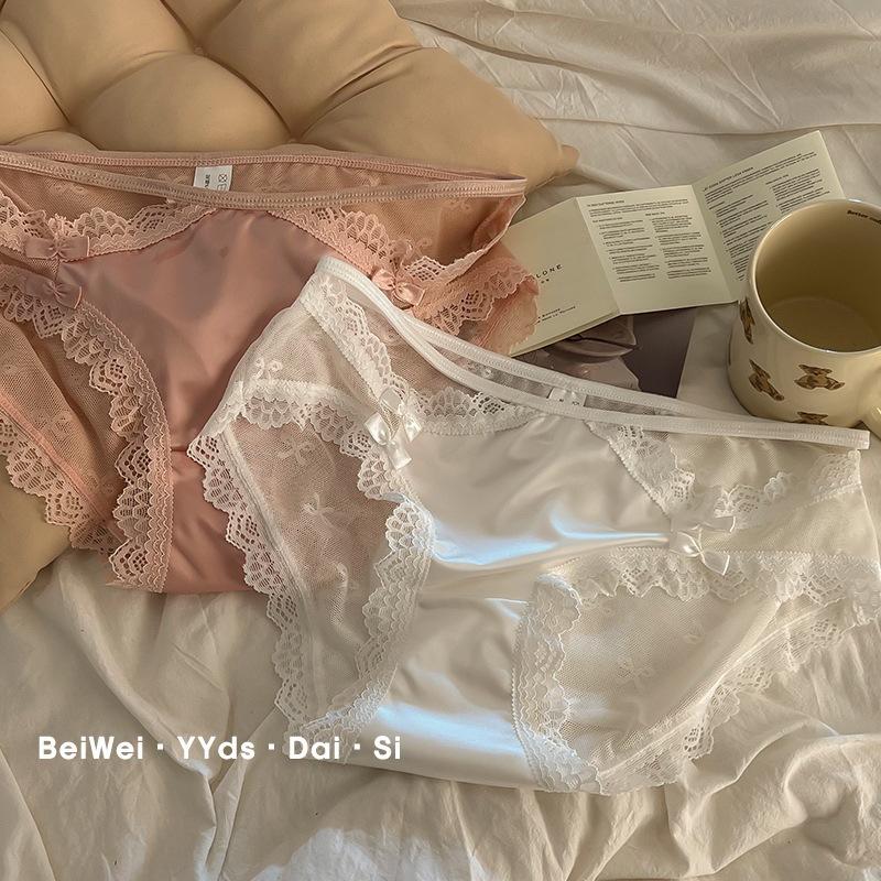 Ropa interior de encaje semitransparente puro estilo francés con lazo para mujer, bragas de entrepierna sexy, cómodas y muy elásticas para mujer