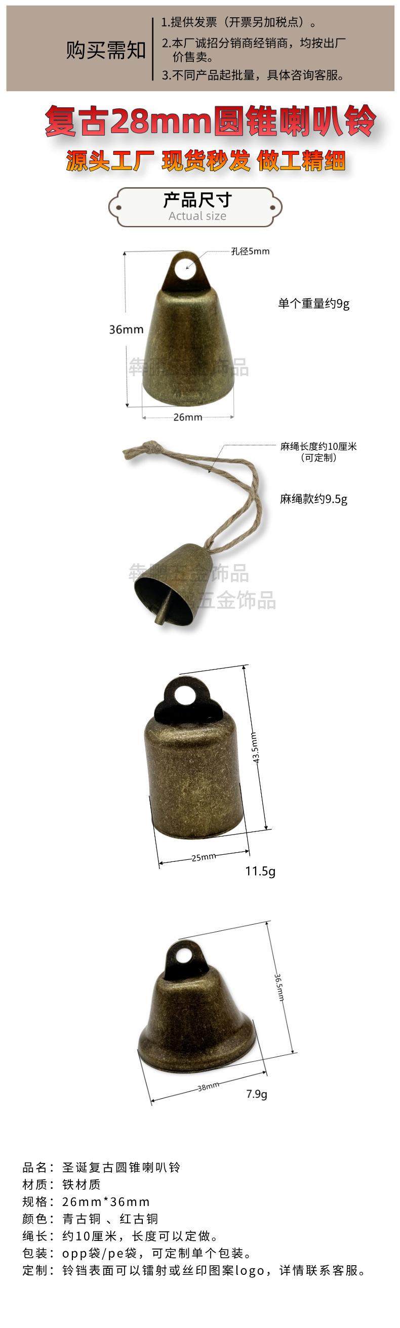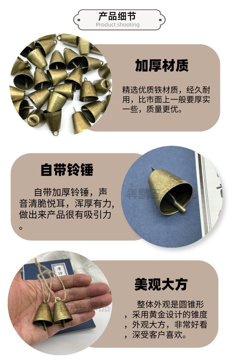 Campana de bronce retro, campana de cuerno, carillones de viento, adornos de metal, campana pequeña, accesorios de joyería DIY, decoración navideña