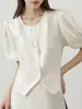 Camisa de rayas de colores contrastantes estilo Hong Kong para mujer, diseño elegante, estilo nicho, hombros descubiertos, manga corta, verano 2024
