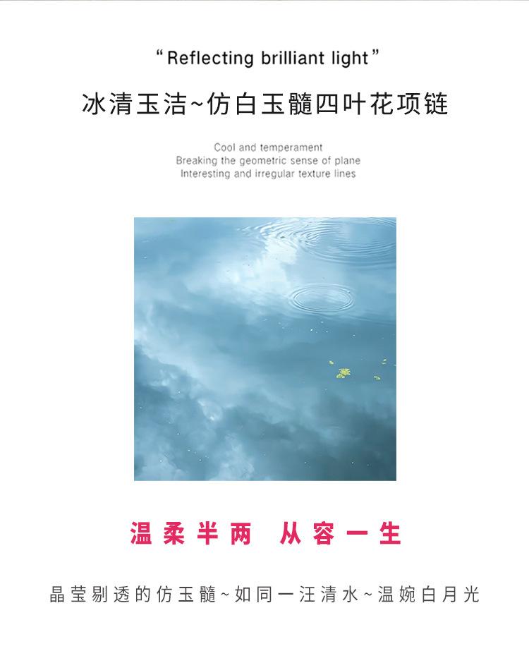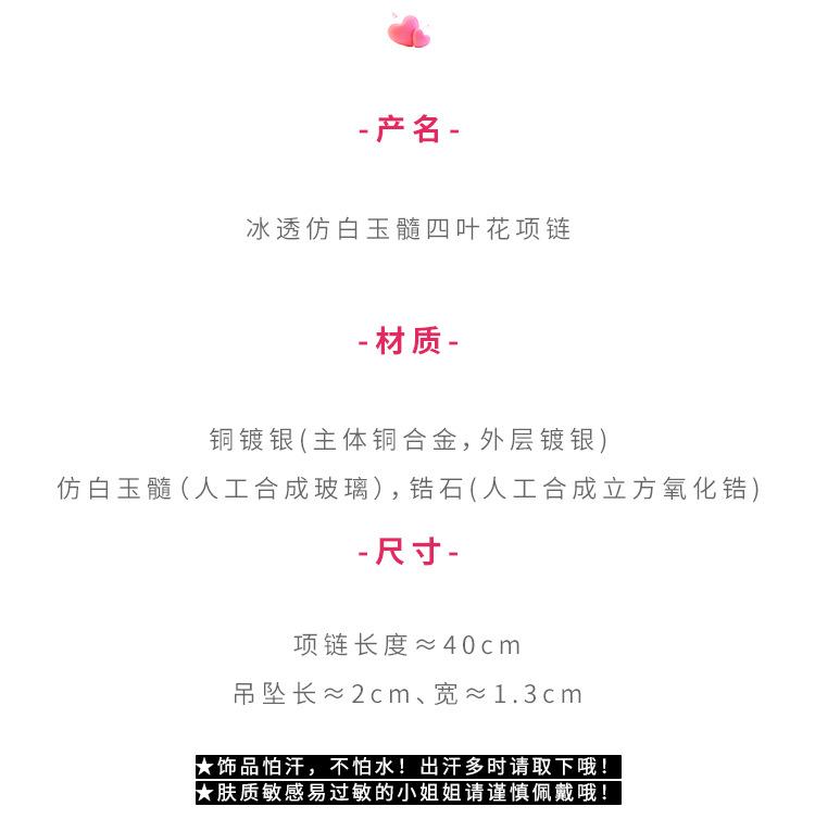 Iced-out imitation white chalcedony four-leaf clover necklace
