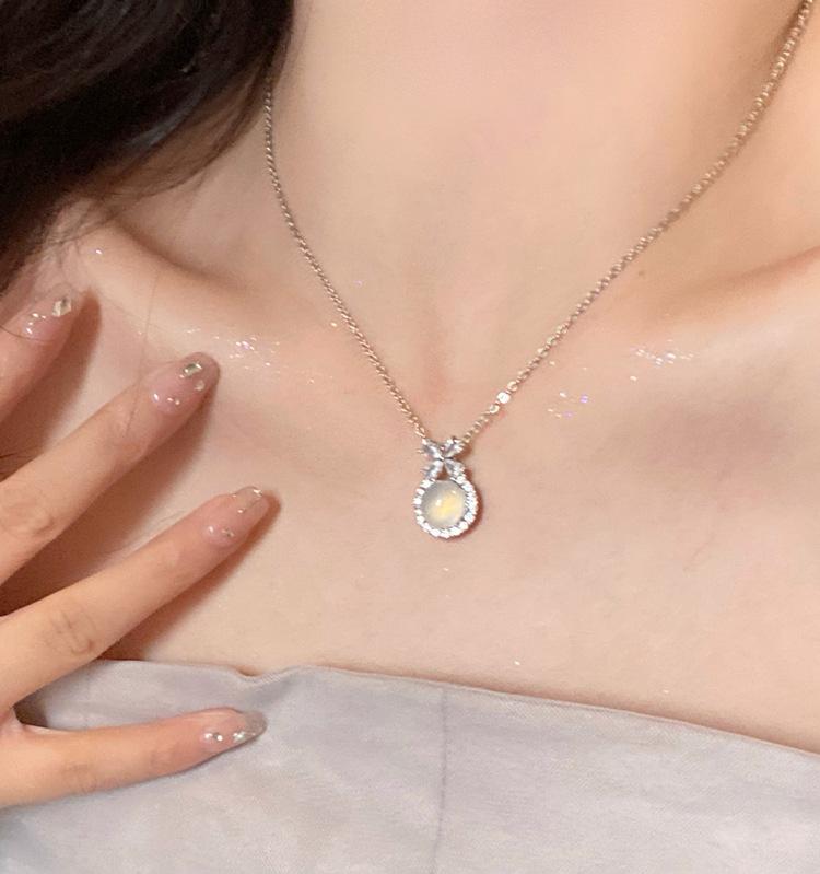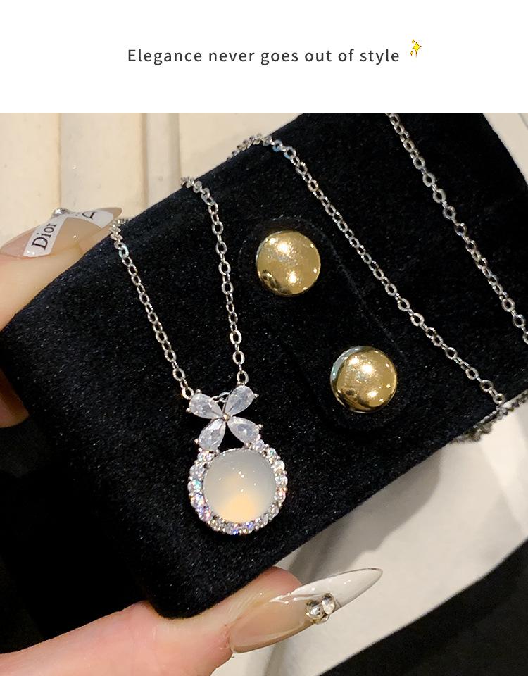 Compra Collar de Cobre Plateado para Mujer, Collar de Calcedonia Blanca Imitación, Cadena de Clavícula con Colgante de Zircón Floral Nicho de Lujo Ligero, Joyería al por mayor en Joom.pro