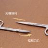 Tijeras puntiagudas de acero inoxidable para cejas, herramientas de maquillaje, tijeras para recortar cejas con codo, tijeras para vello de nariz redonda, venta al por mayor de fábrica