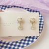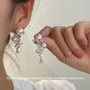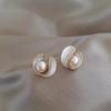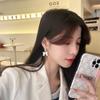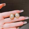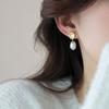 Pendientes de plata S925 con forma de aguja francesa de alta gama con perla rosa y diseño de nicho retro, pendientes huecos con clip para la oreja.