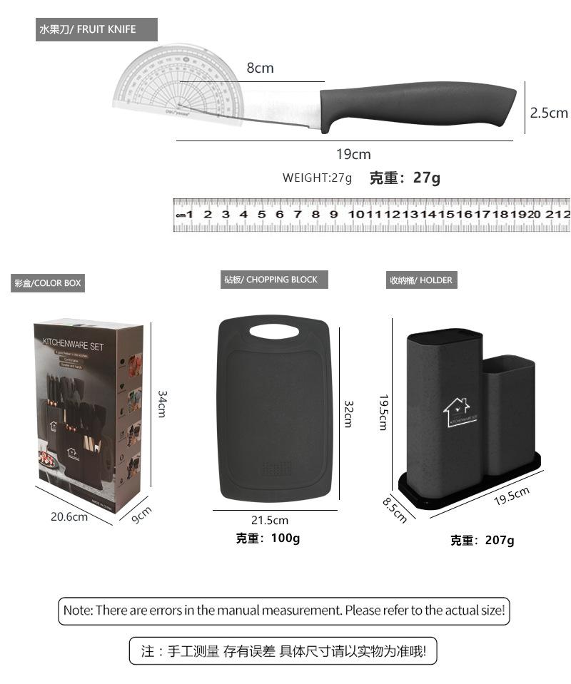 Special kitchen utensils and knives 19-piece set 850g-black, Special 19-piece set of kitchenware knives 850g-d...