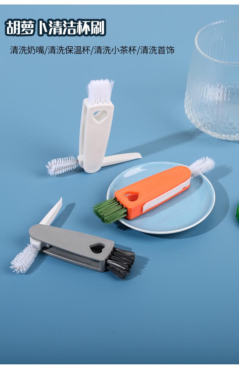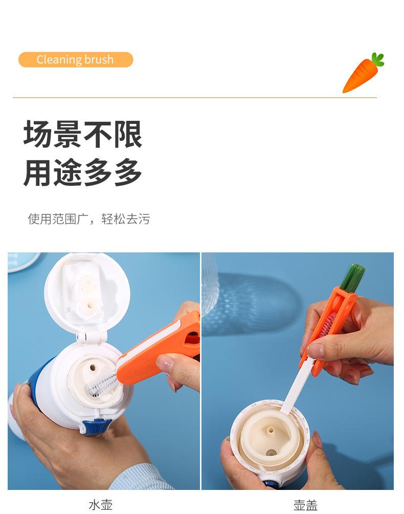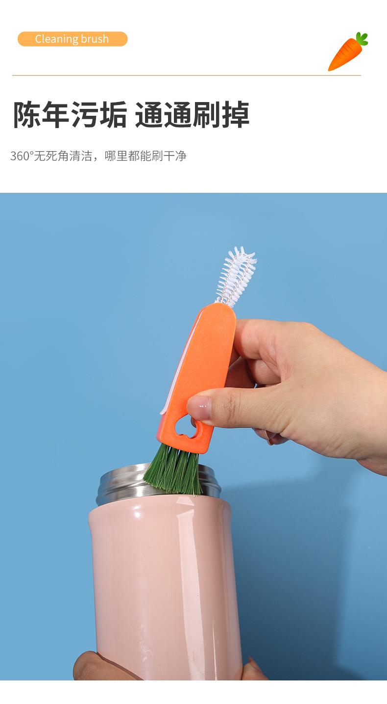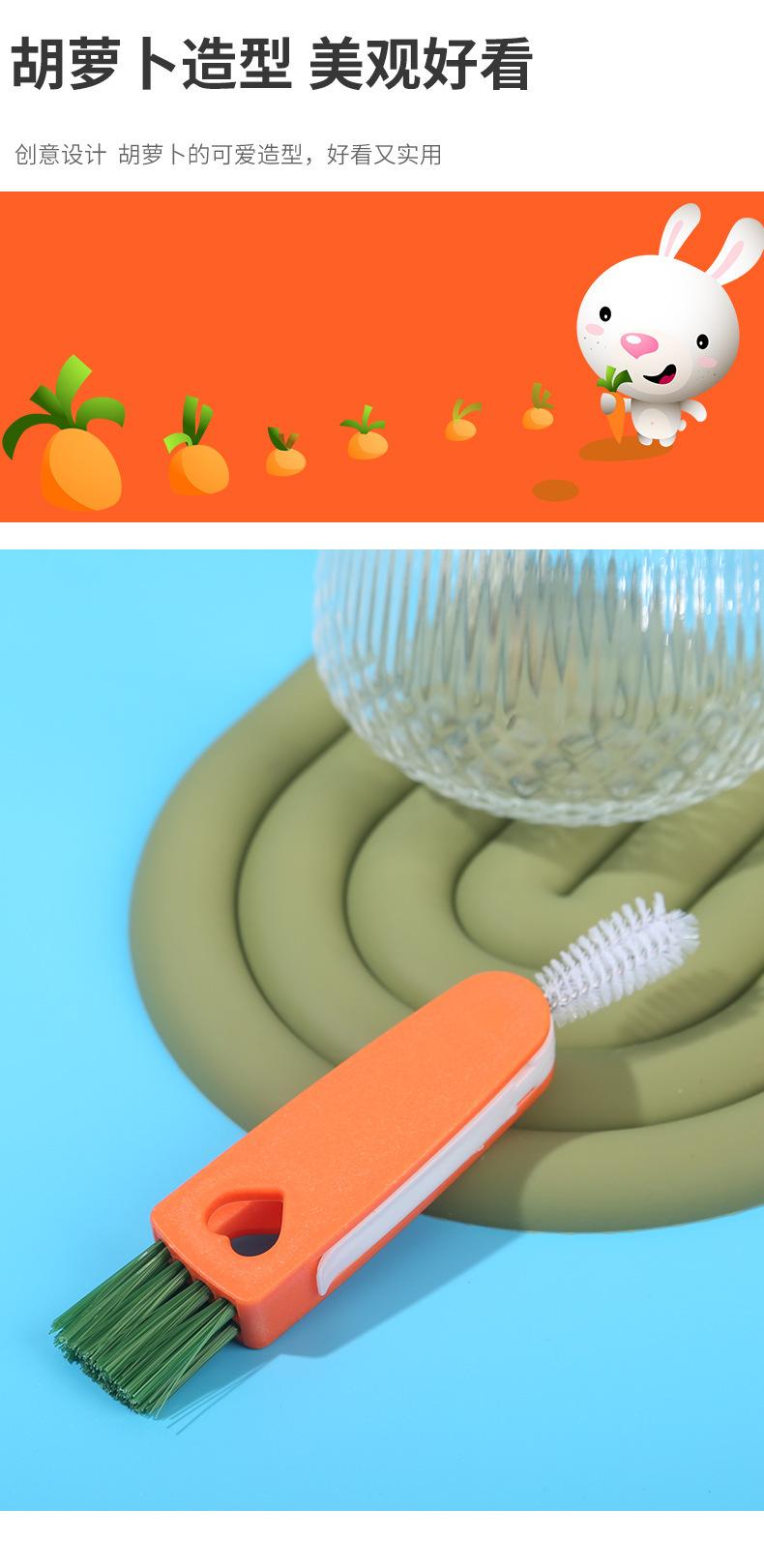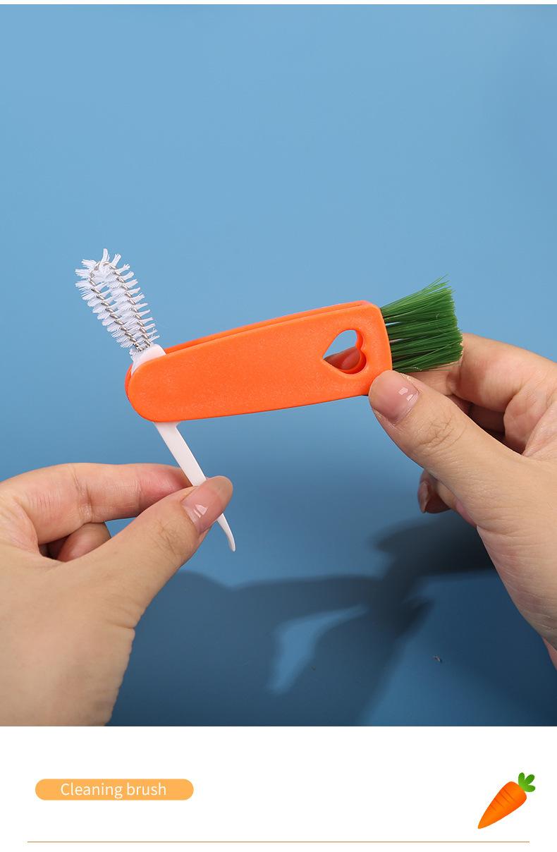 Cepillo creativo para tazas de zanahoria, tres en uno, para limpiar tapas de tazas, ranuras para pezones, sin ángulos muertos