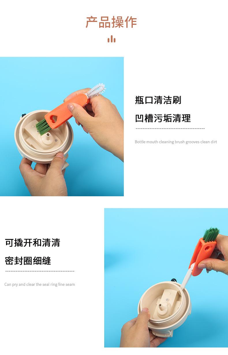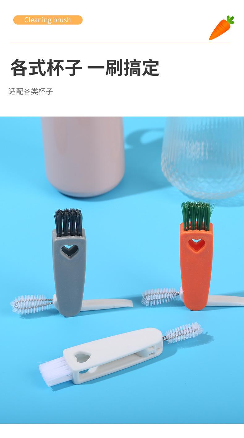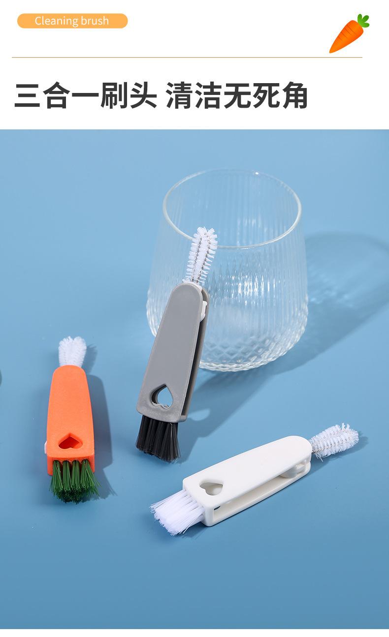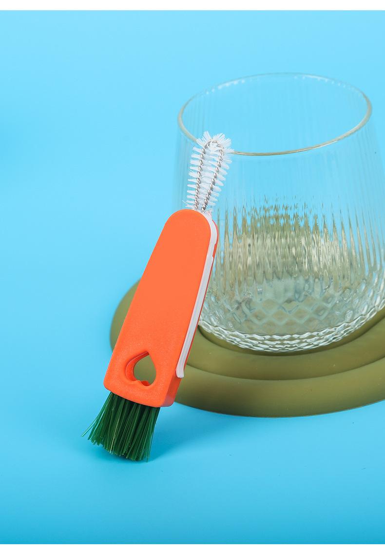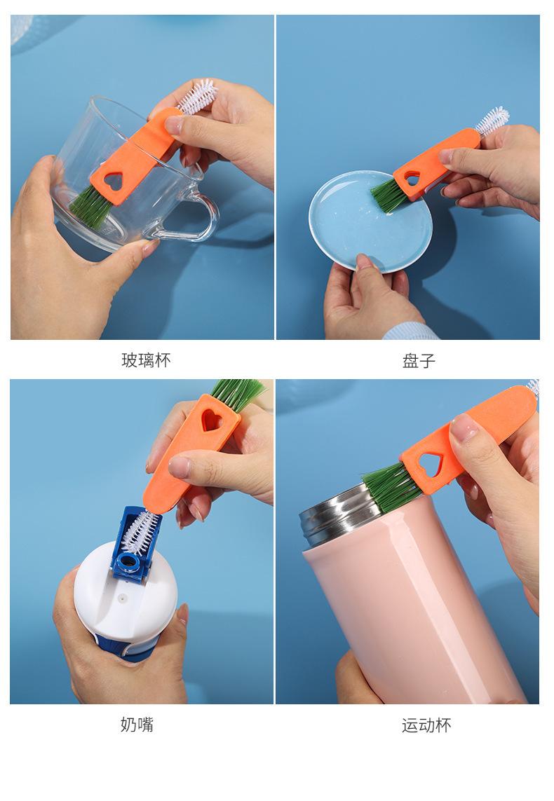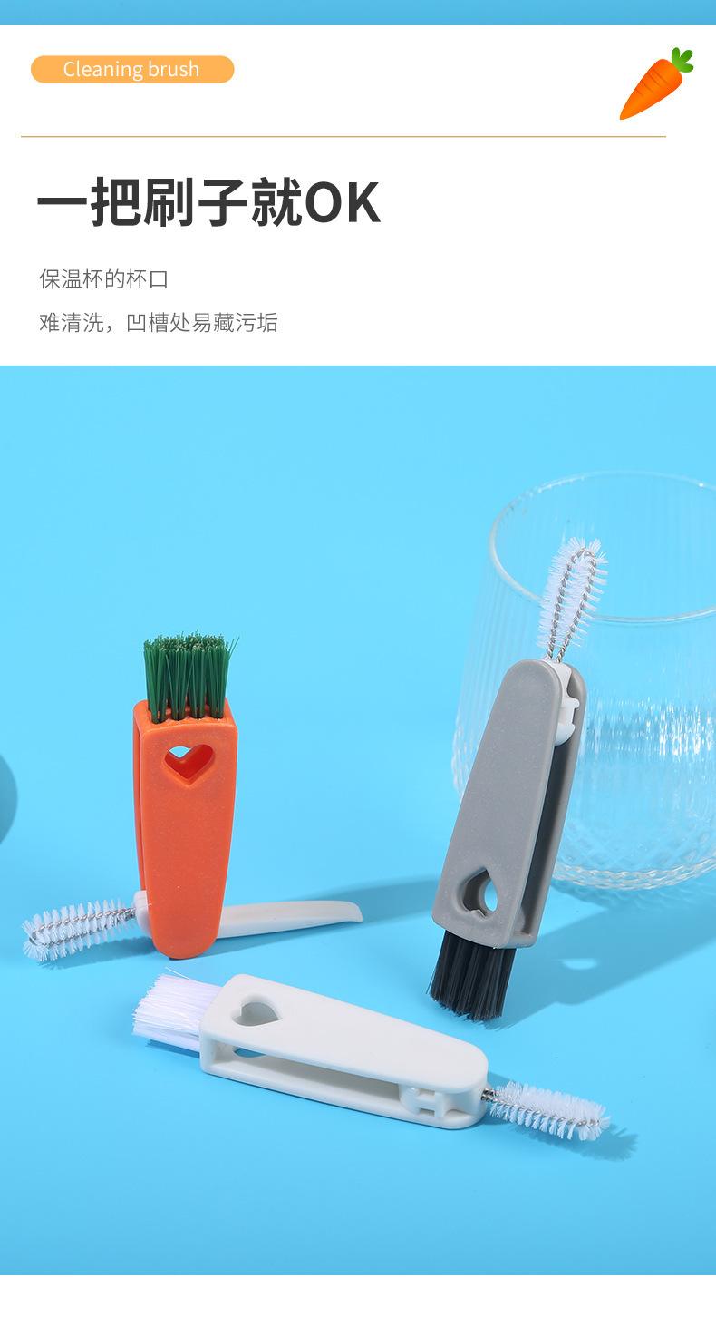 Cepillo creativo para tazas de zanahoria, tres en uno, para limpiar tapas de tazas, ranuras para pezones, sin ángulos muertos
