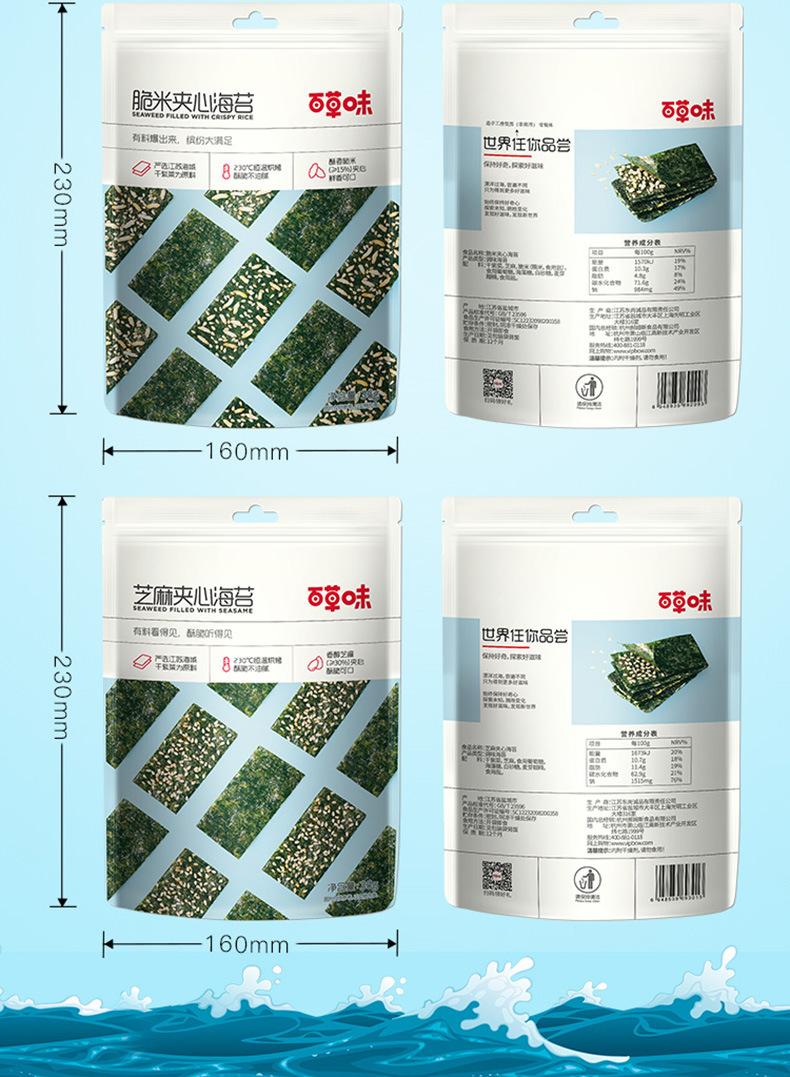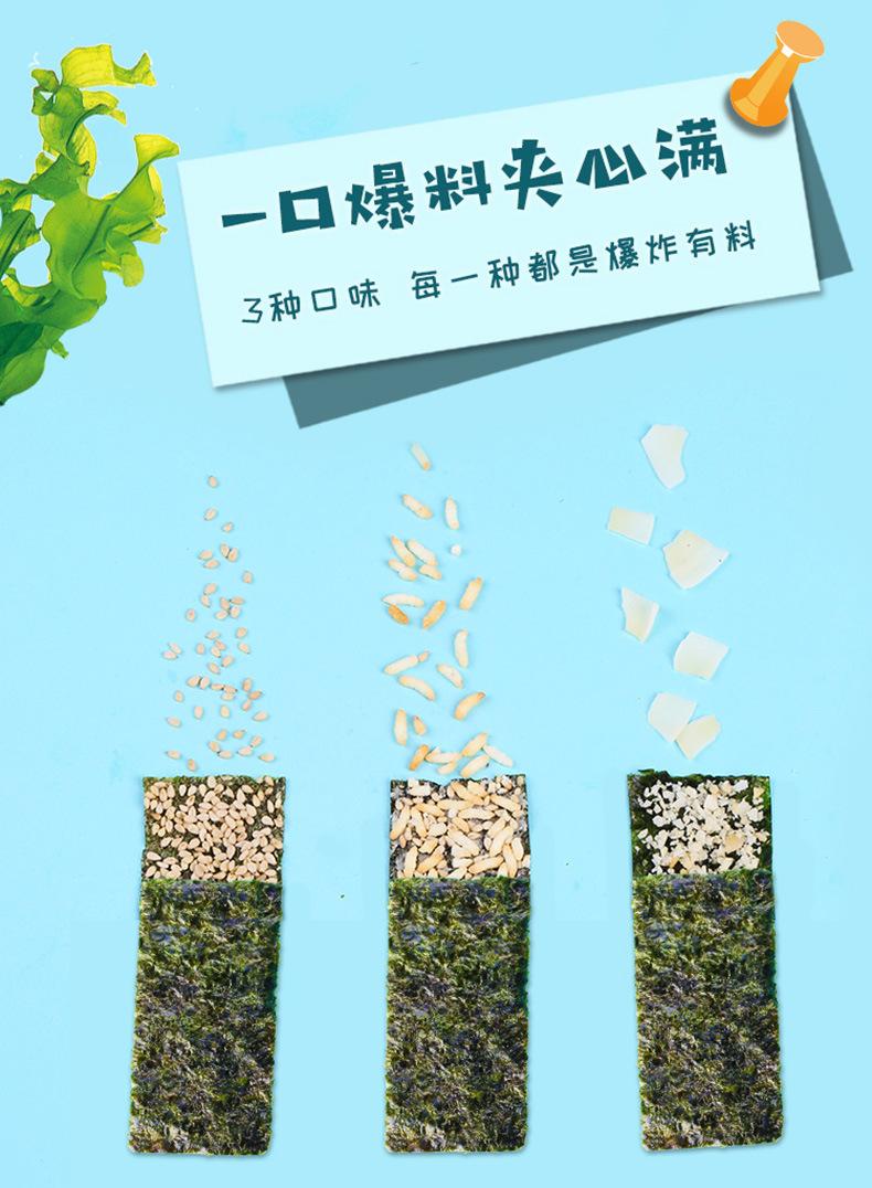 Sándwich de sésamo con hierbas y algas marinas, 36 g, aperitivos infantiles, mariscos informales, comida instantánea al por mayor