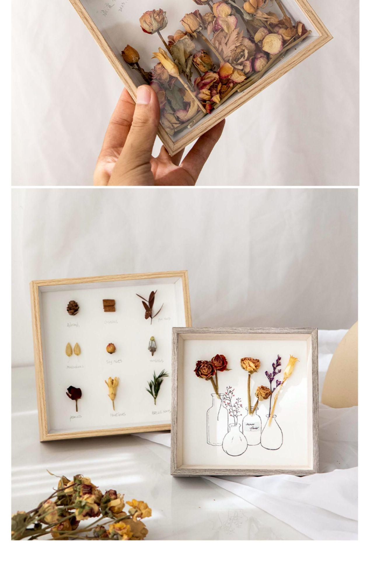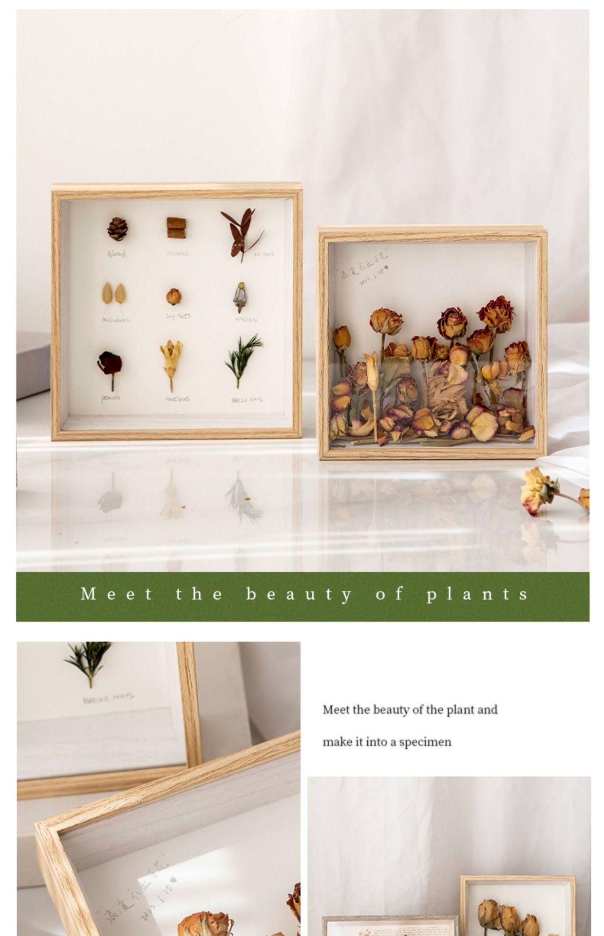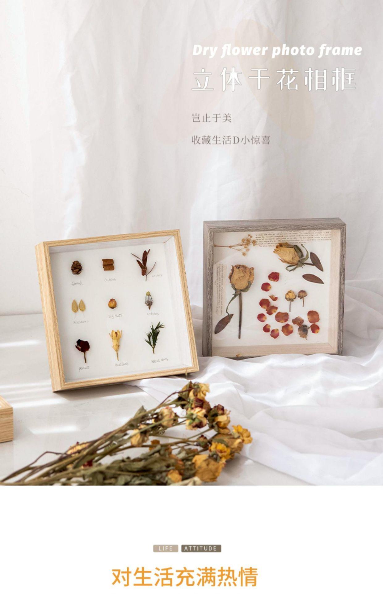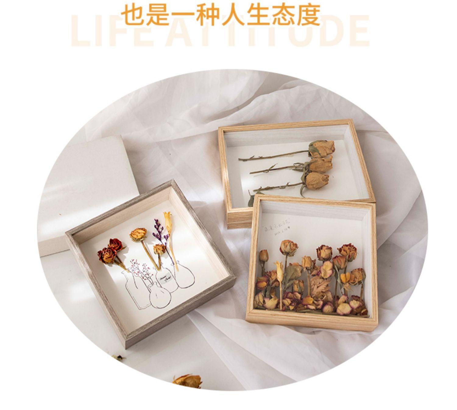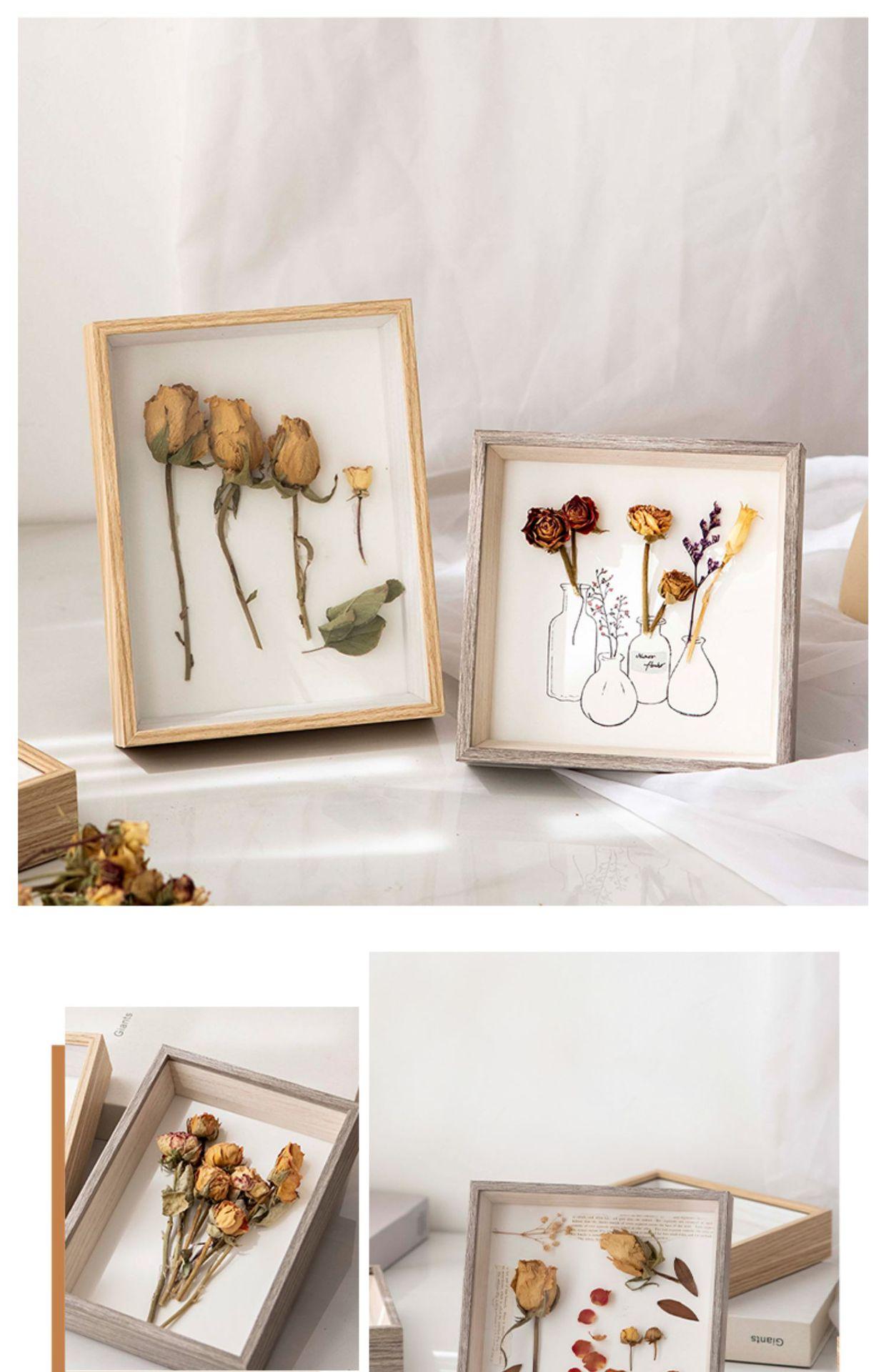 Marco de fotos de flores secas al por mayor diy hecho a mano flor eterna rosa preservación marco de fotos de madera hueco marco de exhibición de especímenes mesa