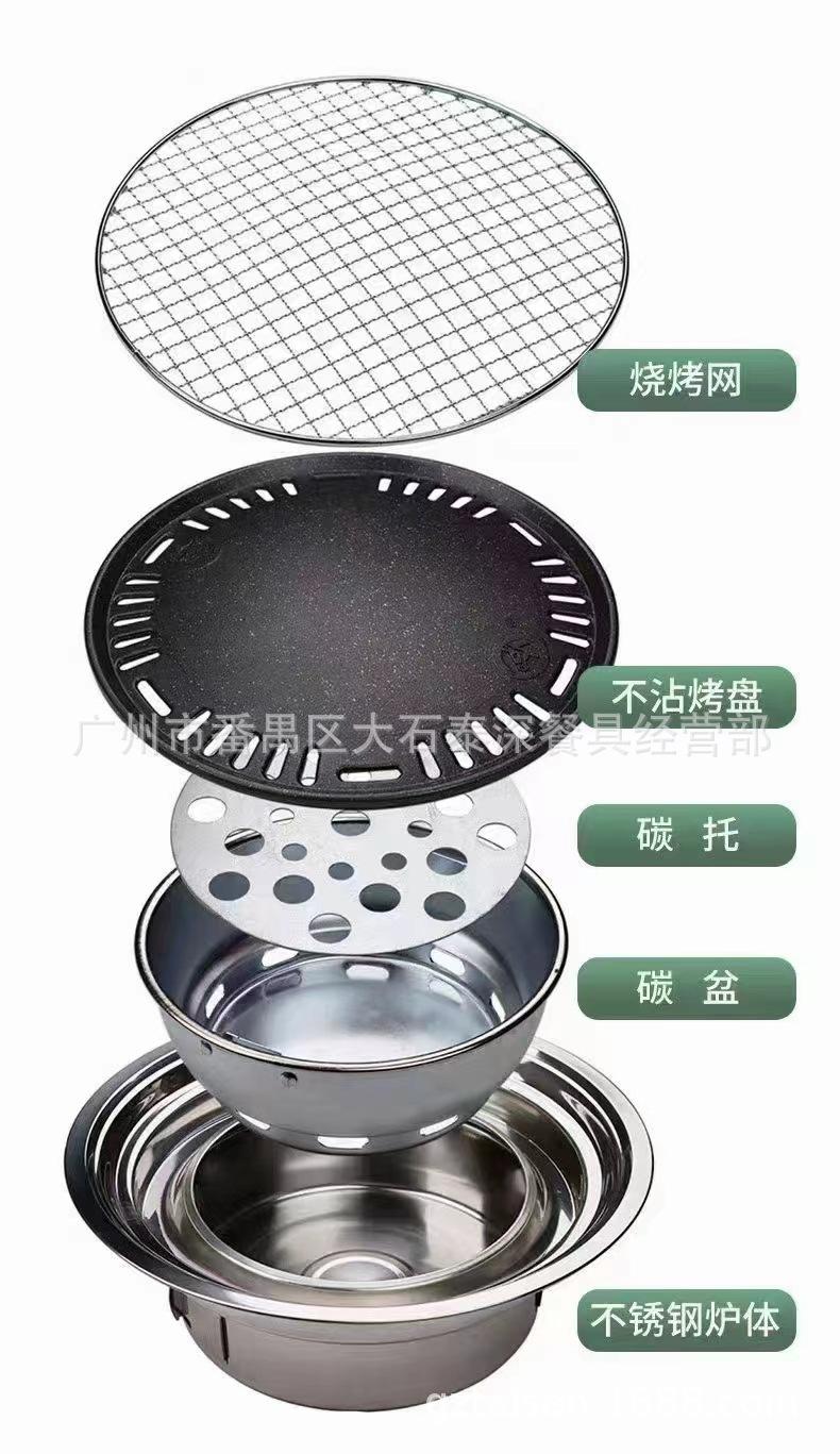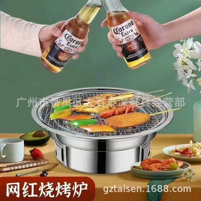 Parrilla de barbacoa coreana redonda de acero inoxidable, parrilla de barbacoa de carbón comercial para exteriores