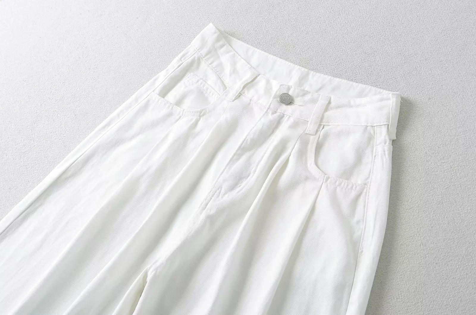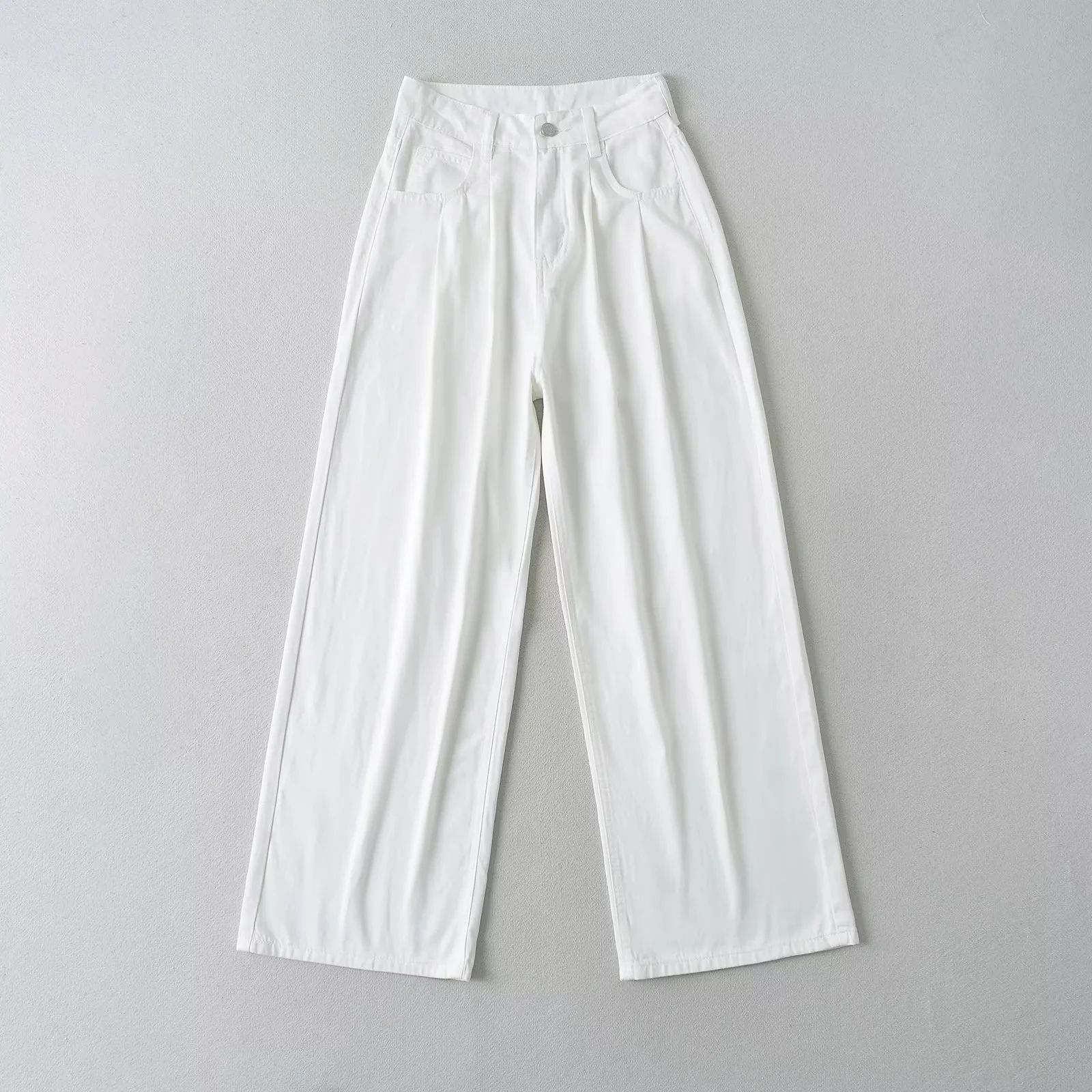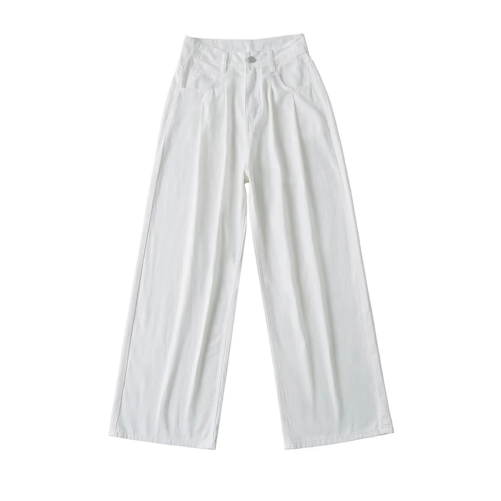 Pantalones anchos informales, holgados, de cintura alta y estilo americano, con pliegues y rectos, para verano de 2024.