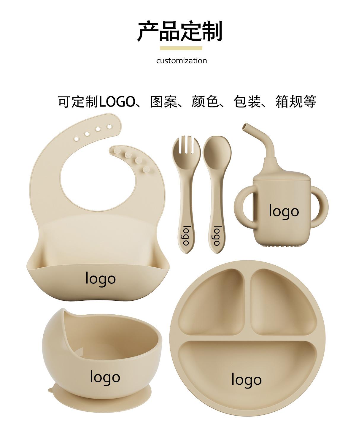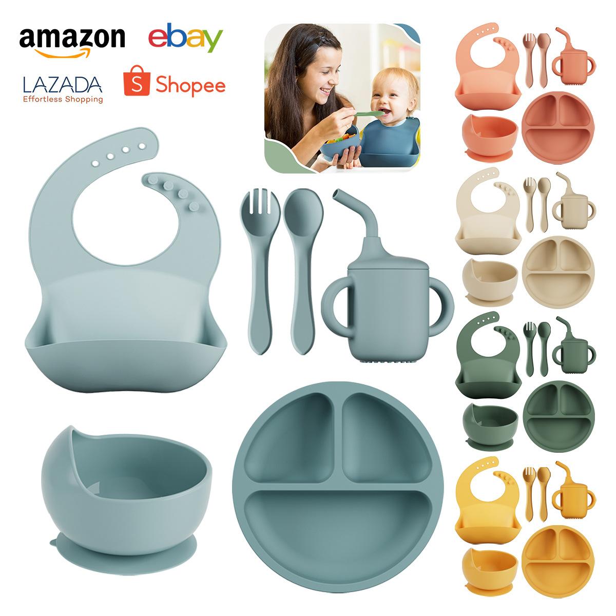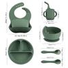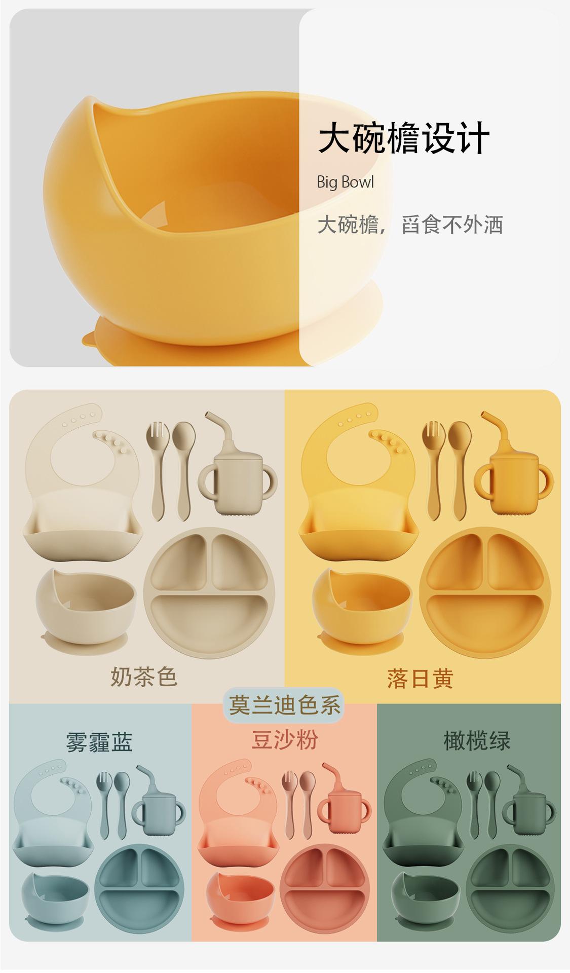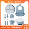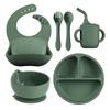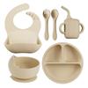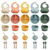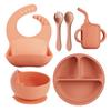 Vajilla de silicona para niños 6 piezas cuchara de silicona para bebé para suplemento alimenticio babero para bebé aprendizaje para comer tazón con ventosa venta al por mayor