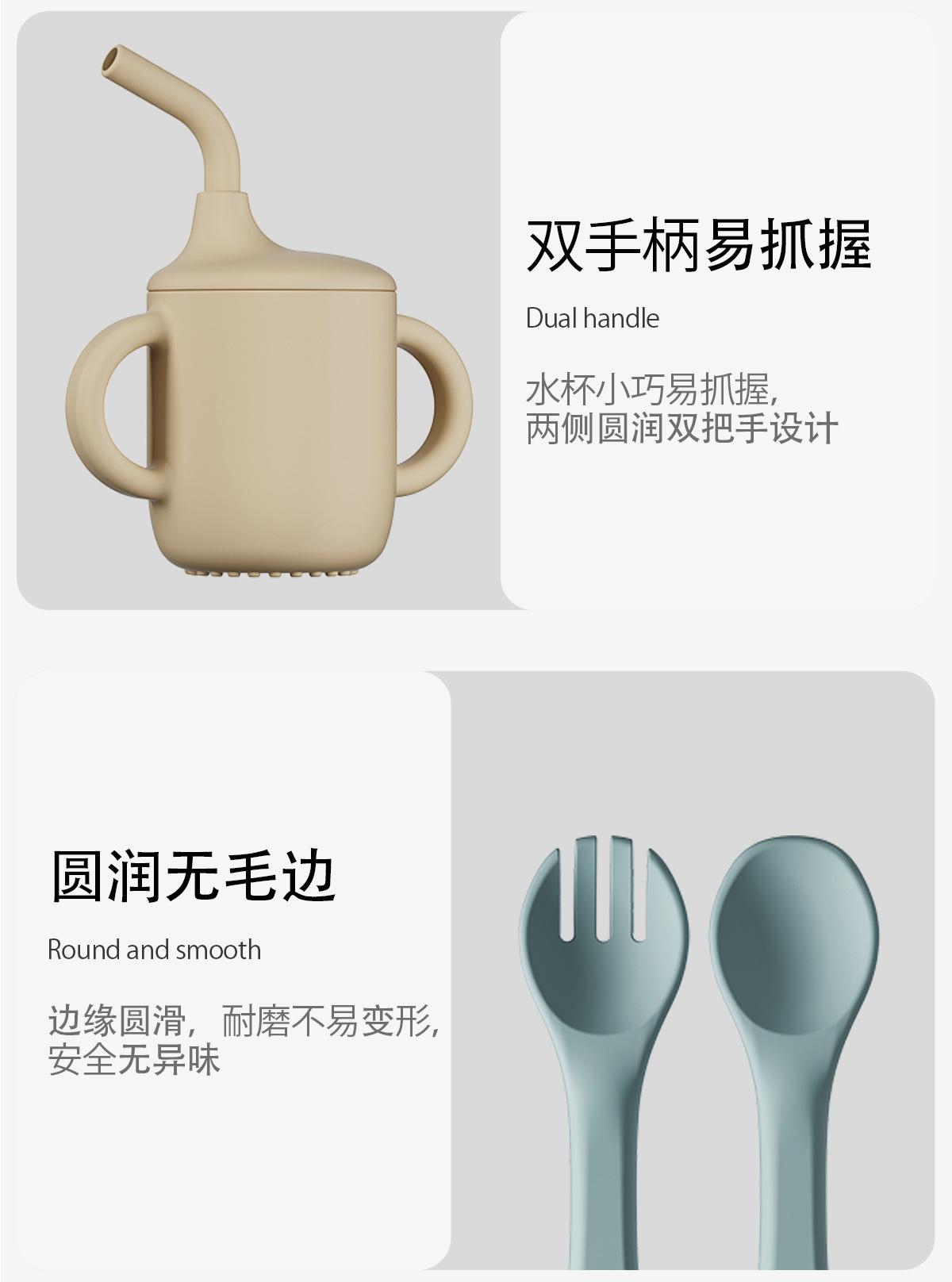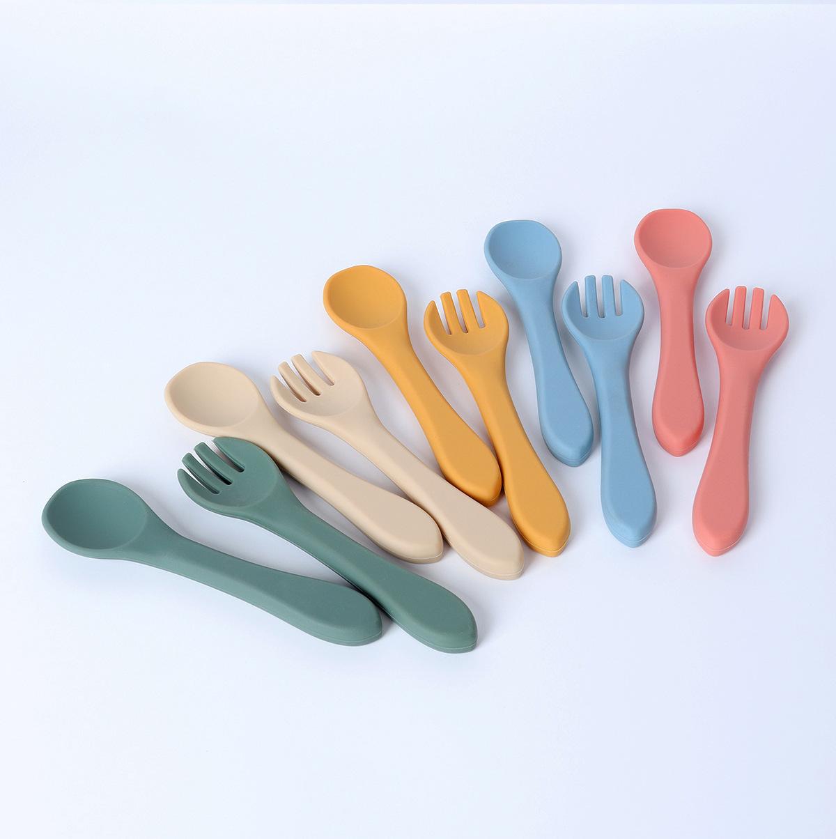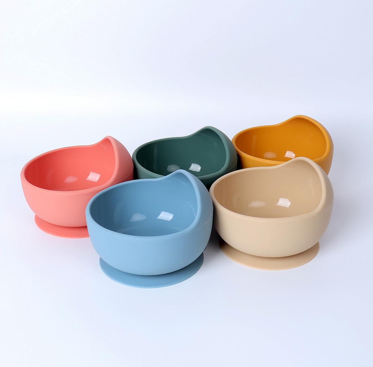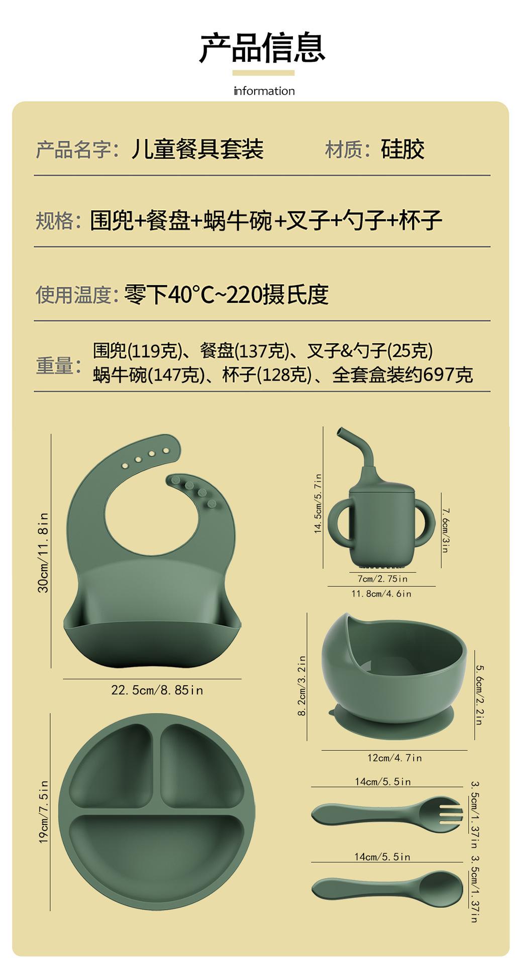 Vajilla de silicona para niños 6 piezas cuchara de silicona para bebé para suplemento alimenticio babero para bebé aprendizaje para comer tazón con ventosa venta al por mayor