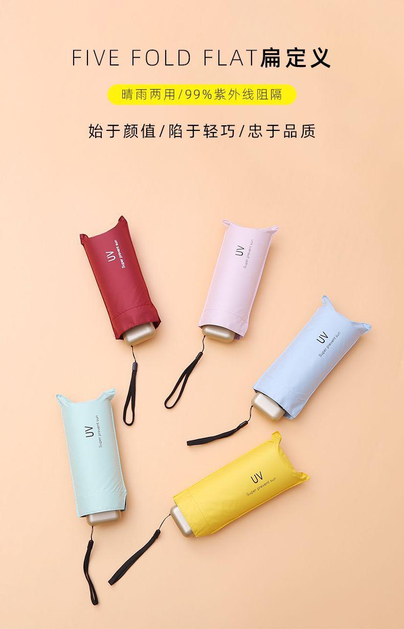Miniparaguas ultraligero para mujer de cinco pliegues, protección solar, protección UV, paraguas de doble uso, paraguas de sol de bolsillo, paraguas cápsula